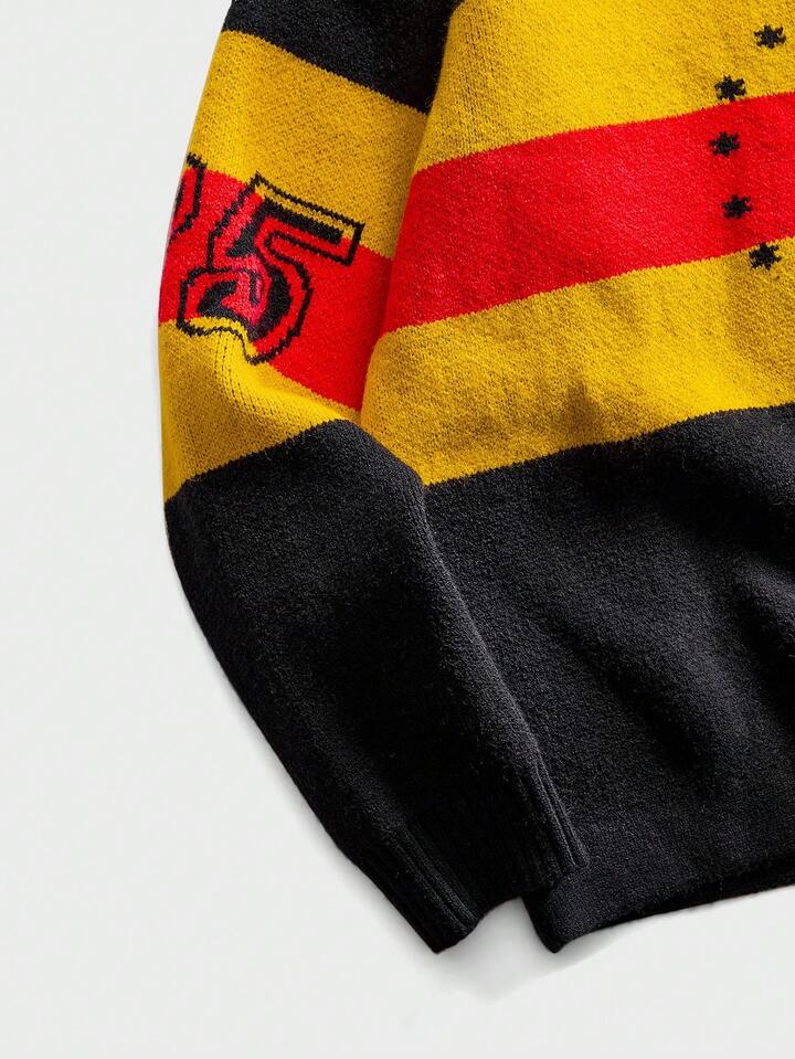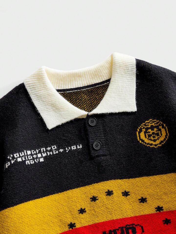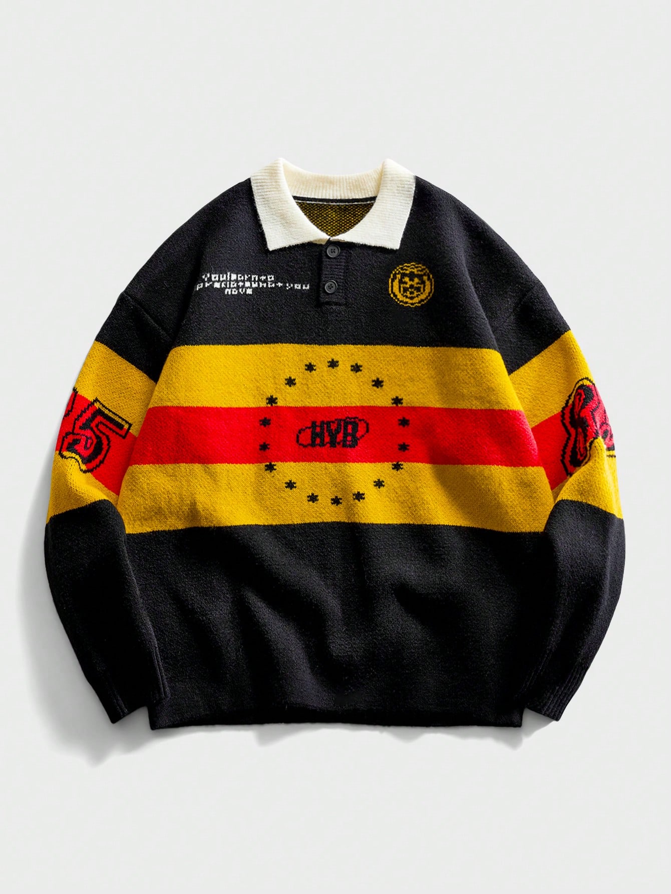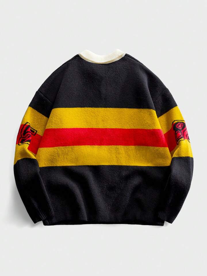 Men's Preppy Retro Football Style Knitted Sweater, Fashionable Streetwear
