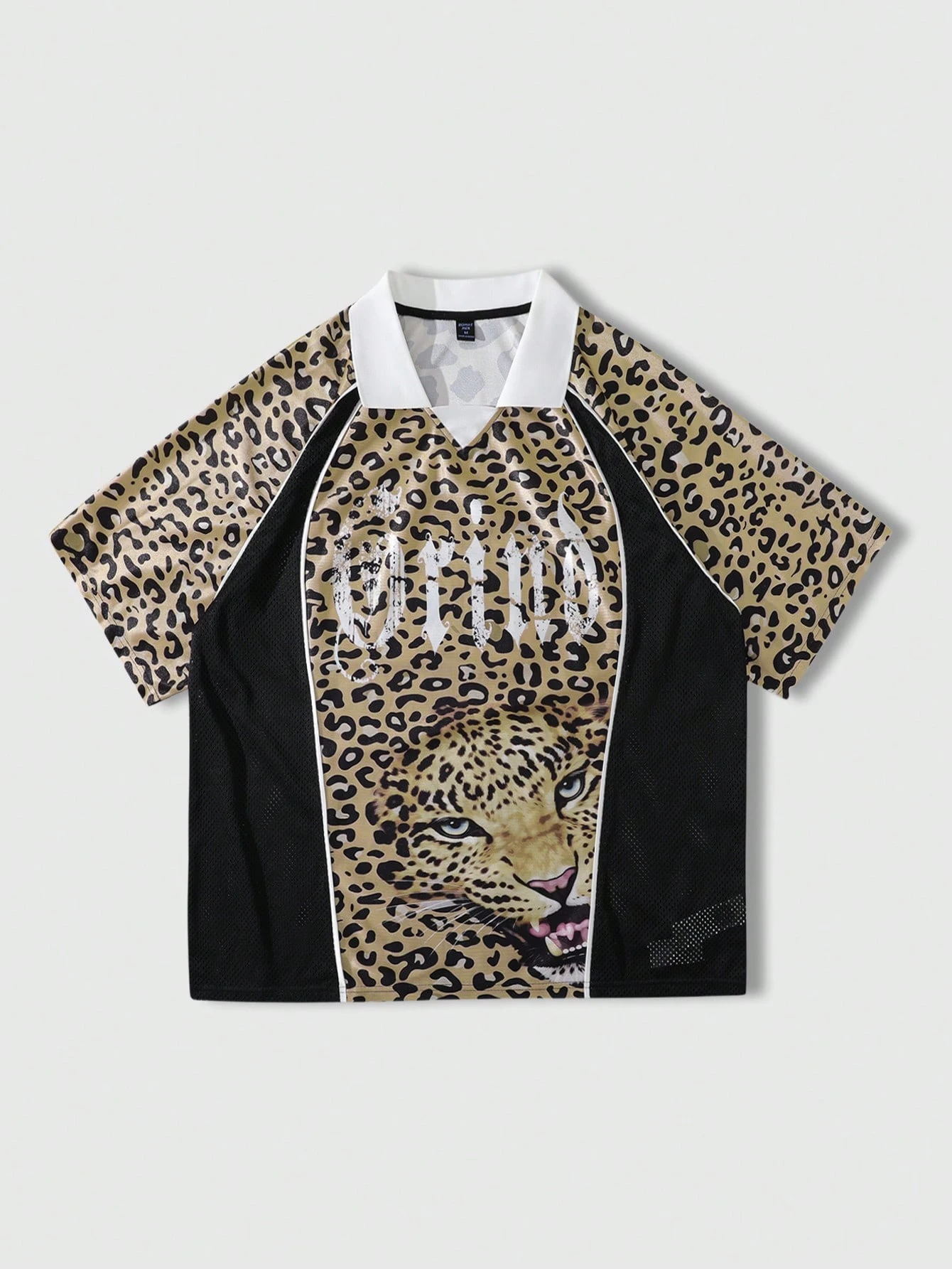 Men's Raglan Sleeve Casual Half-Zip Leopard Print Polo Shirt
