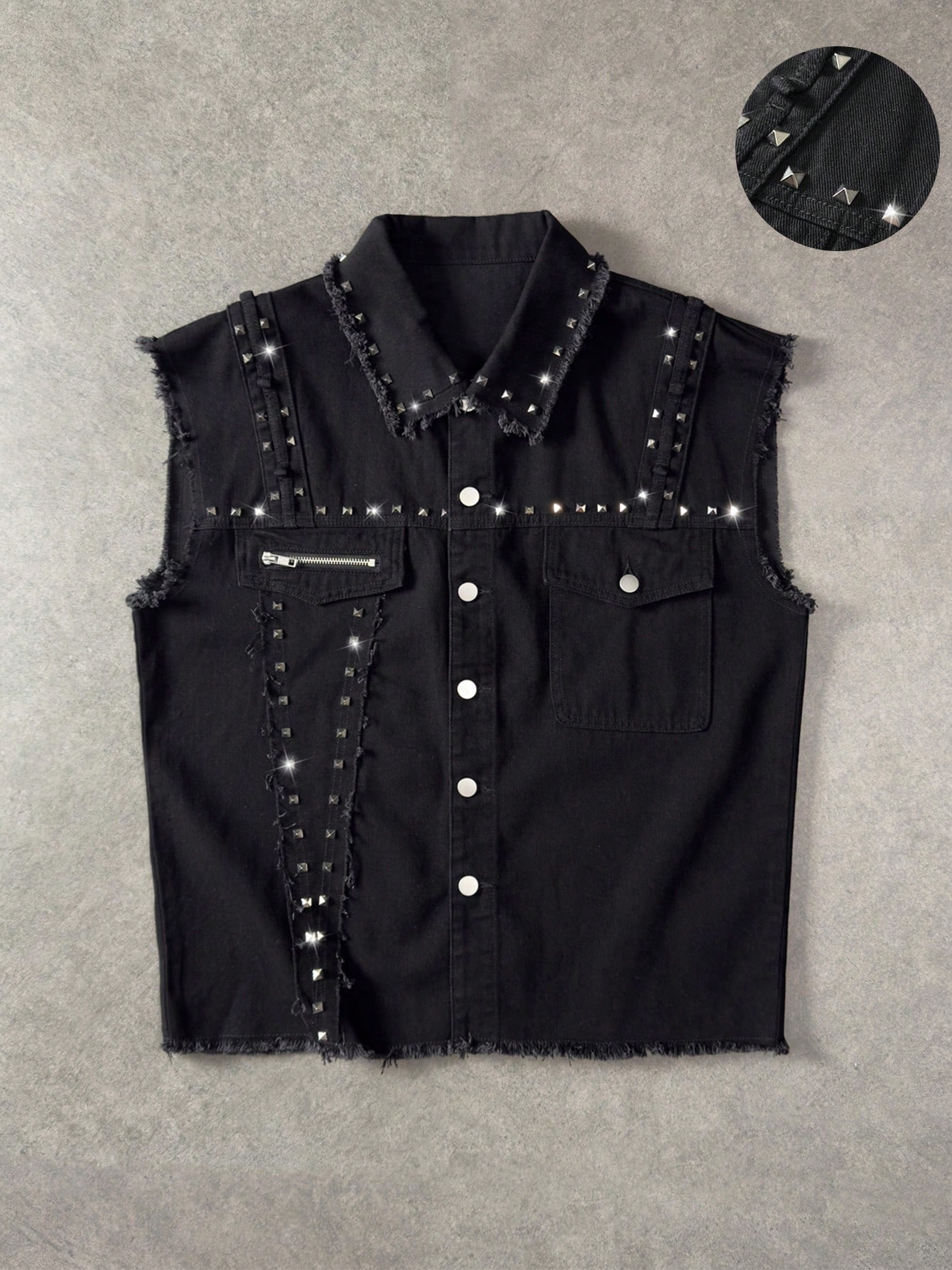 Men's Rivet Design Single-Breasted Casual Denim Vest