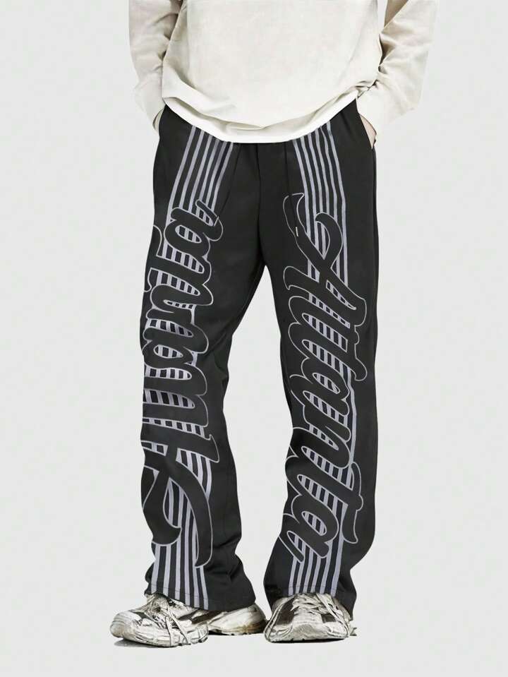 Men's Slogan Print Casual Pants, Suitable For Spring/Summer