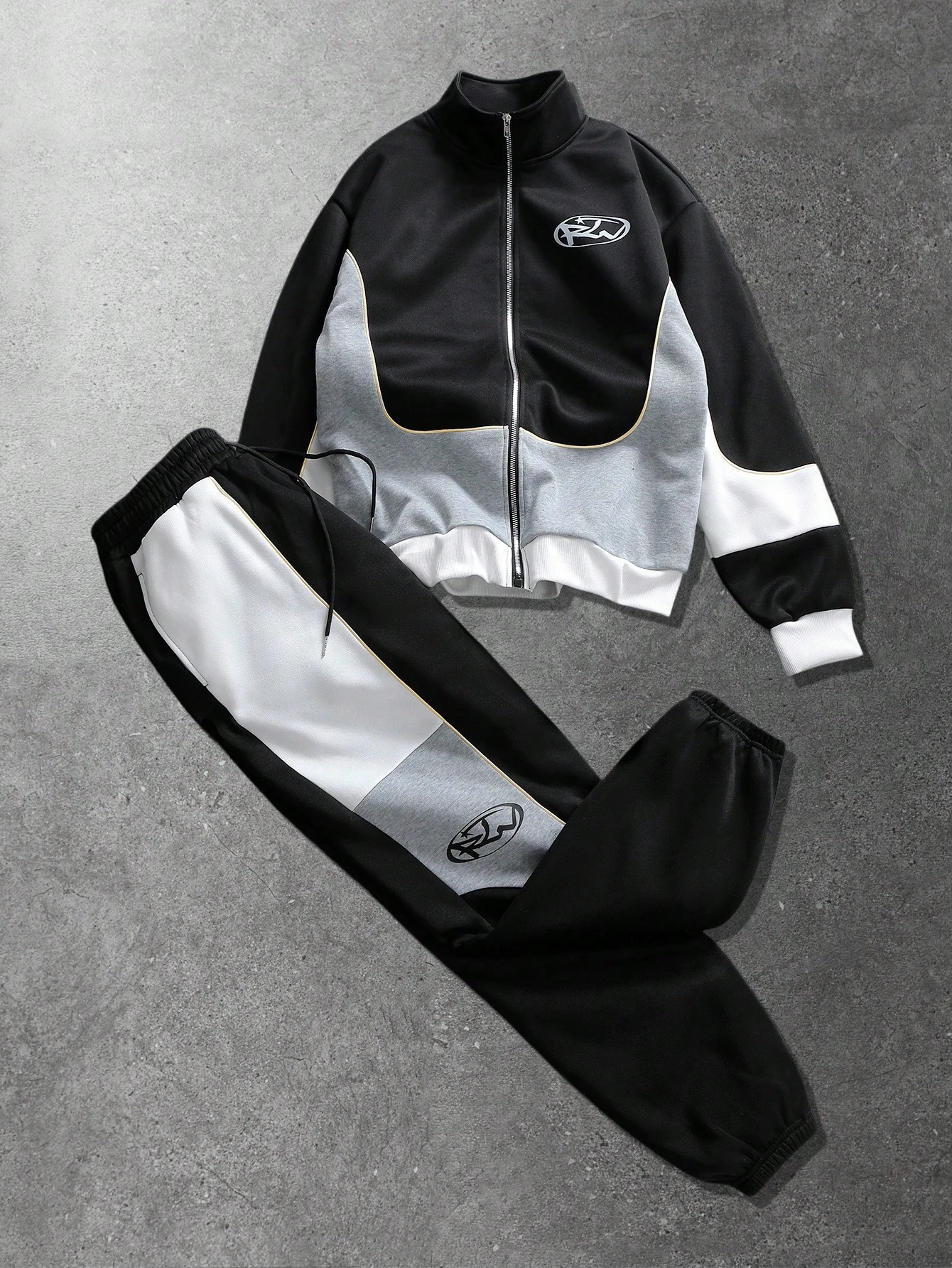 Men's Stand Collar Letter Print Zip Front Long Sleeve Hoodie And Drawstring Waist Sweatpants Casual Suit For Vacation, Commute And Travel