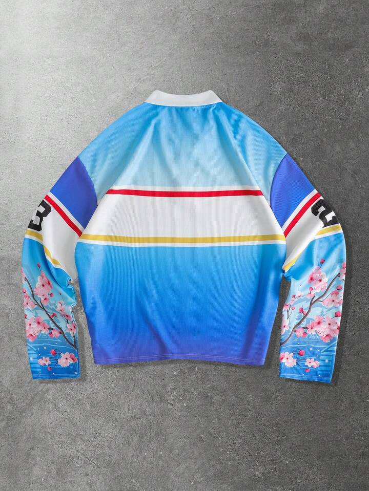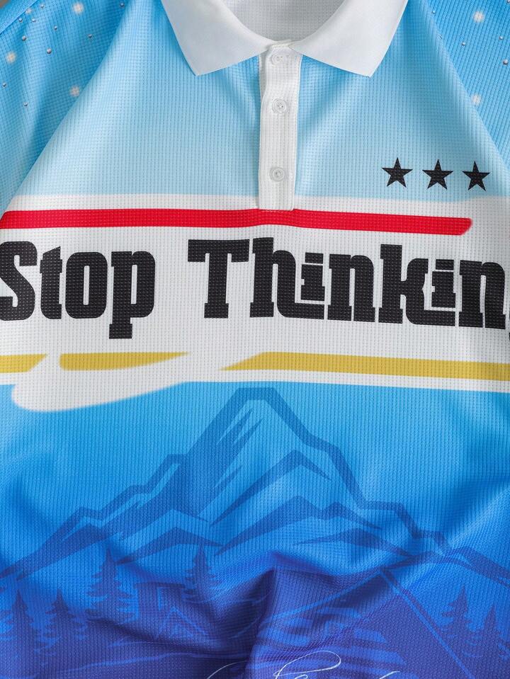 Men's Street Style Graphic Print Polo Shirt, Loose Fit