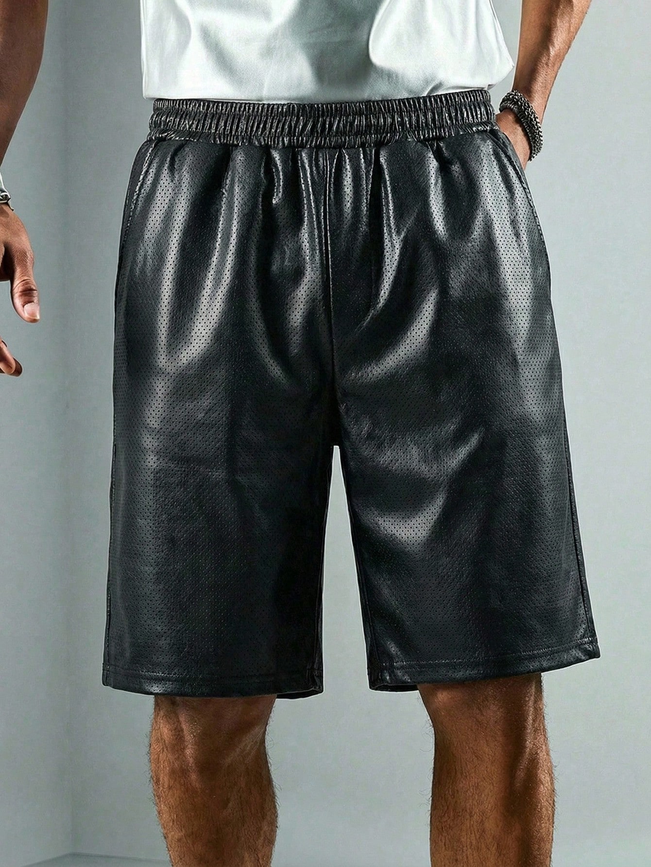Men's Summer Casual Vacation Fashion Street Daily Commute PU Leather Elastic Waist Loose Shorts