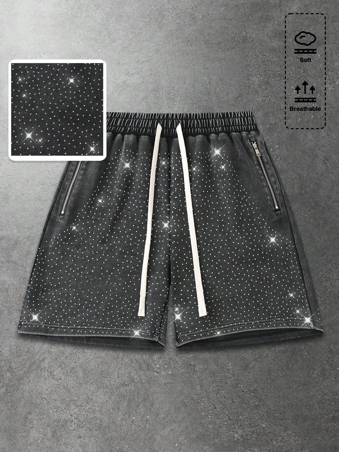Men's Summer Fashion Rhinestone Embellished Drawstring Waist Shorts