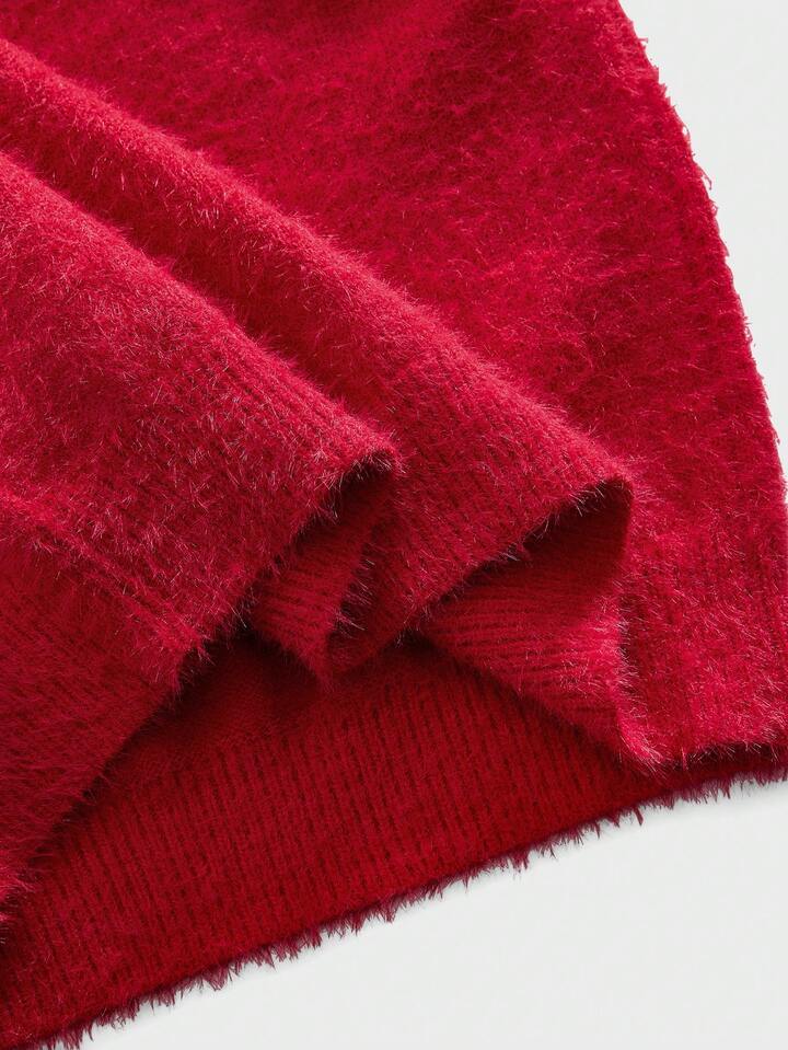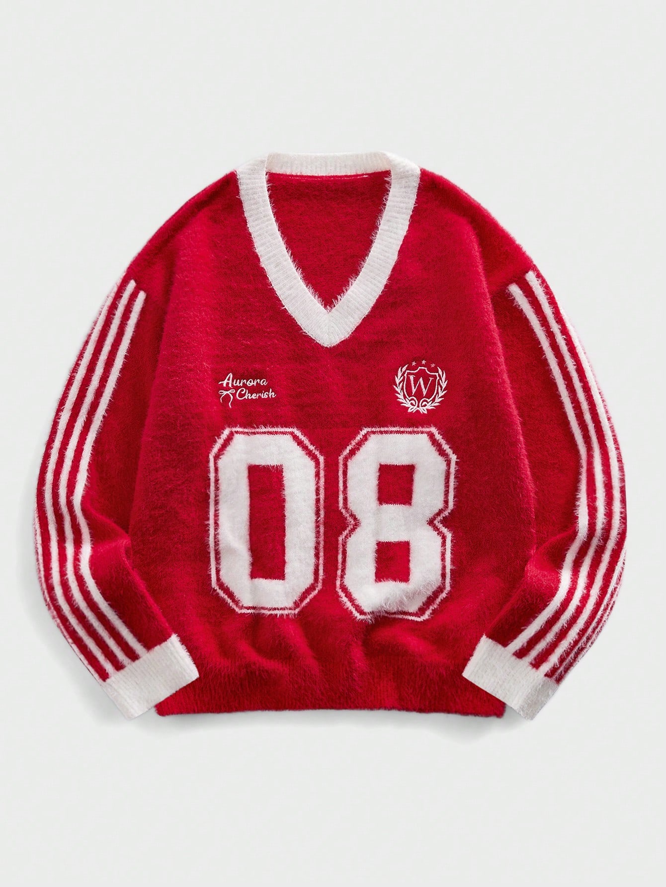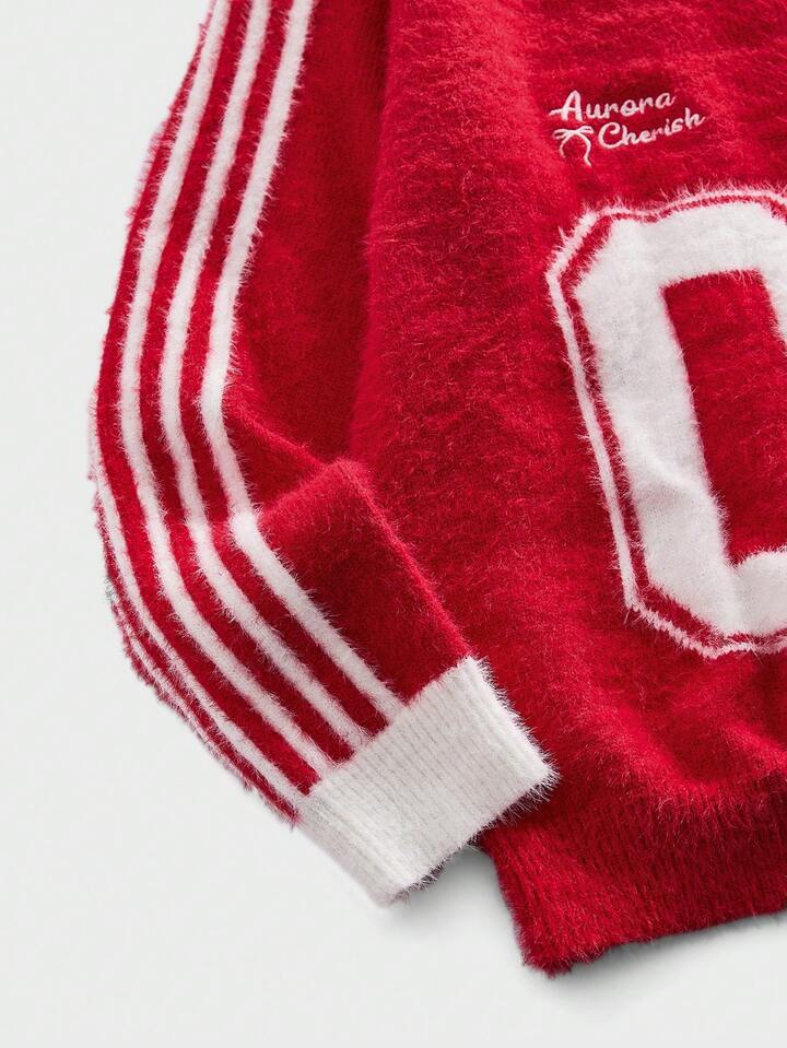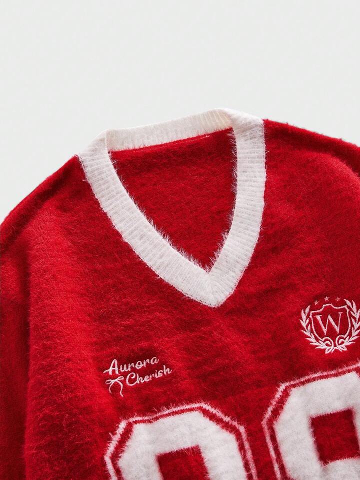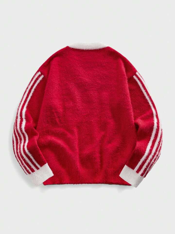Men's V-Neck Striped Numeric & Letter Embroidered Long Sleeve Casual Sweater, Autumn/Winter
