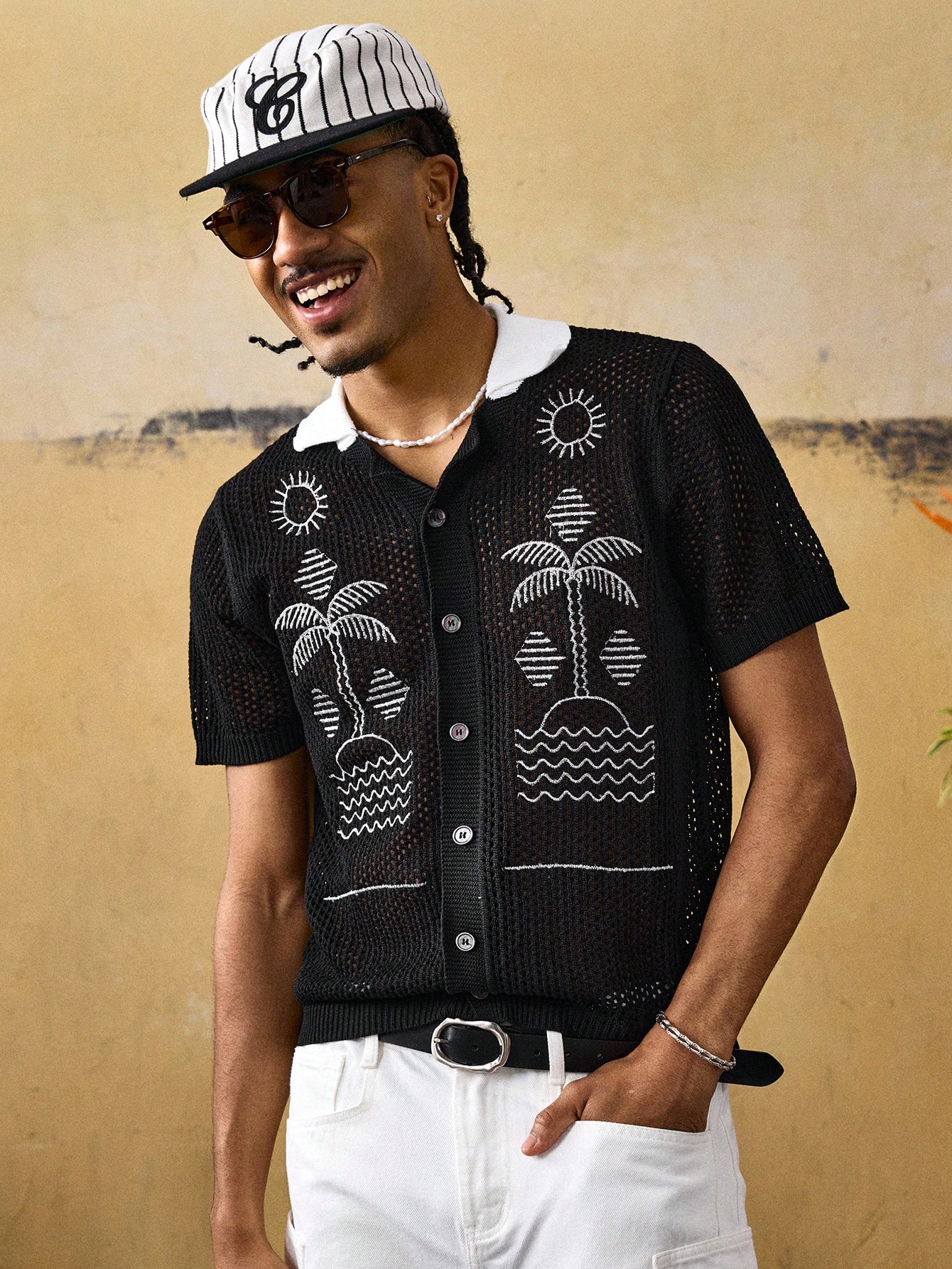 Men's Vacation Palm Tree Embroidered Single-Breasted Knit Top
