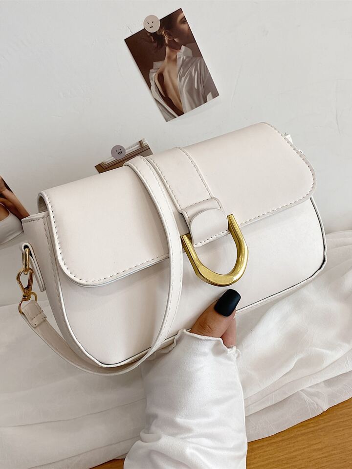 Metal Decor Flap Shoulder Bag
