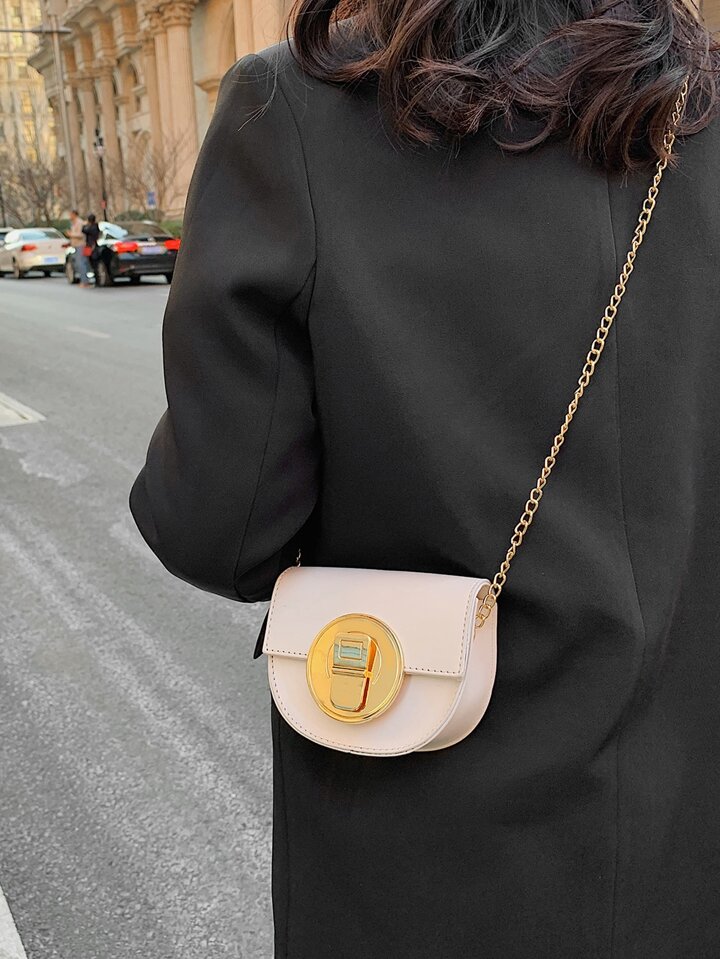 Metal Lock Flap Chain Saddle Bag