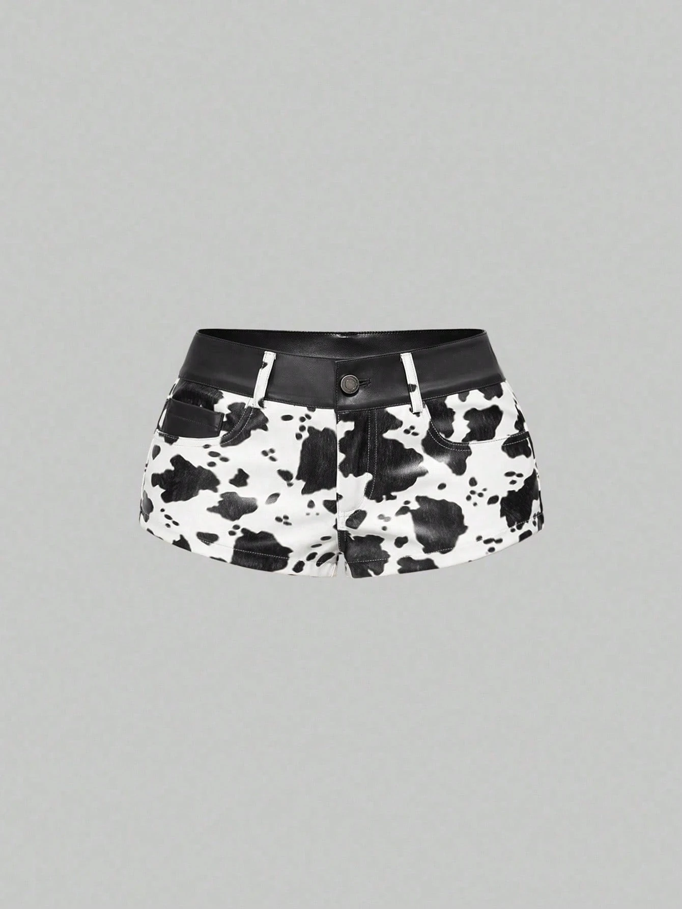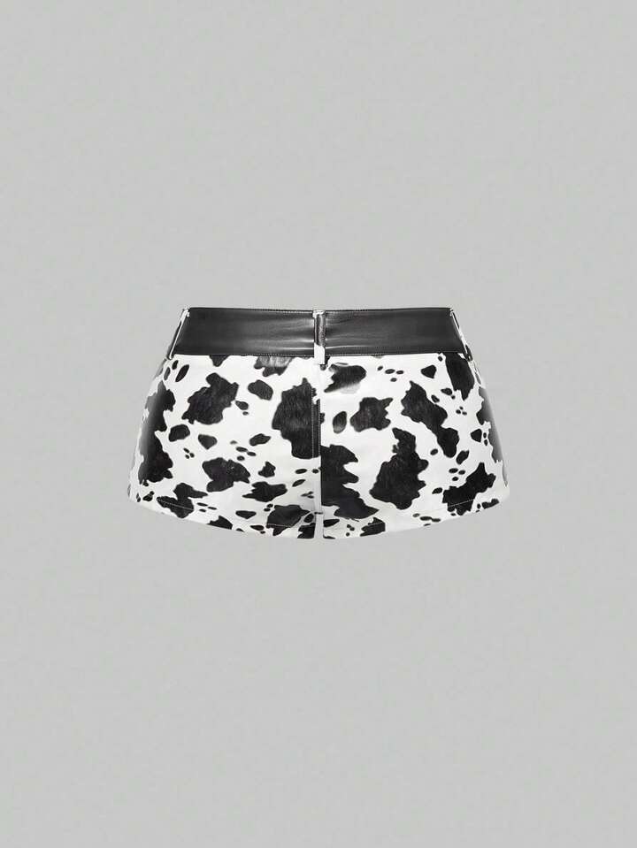 Millennium Babe Vintage Hippie Babe Animal Print Faux Fur Patchwork Mini Low Waist Shorts For Women