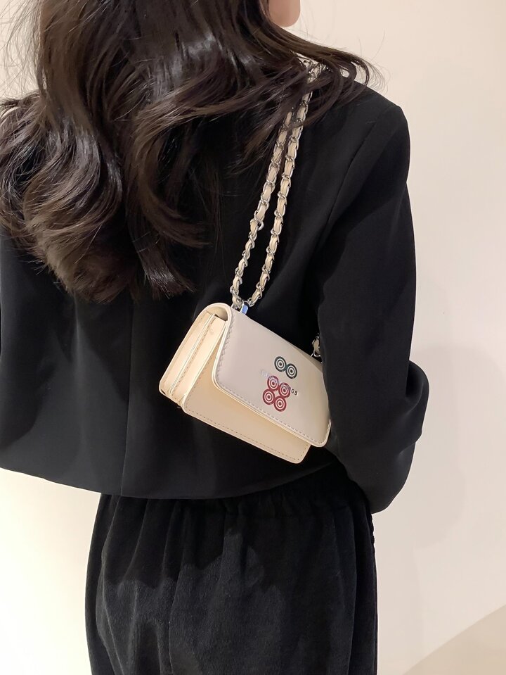 Mini Mahjong Pattern Flap Square Bag
