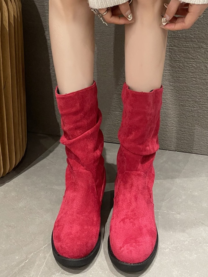 Minimalist Slip-On Faux Suede Slouchy Boots