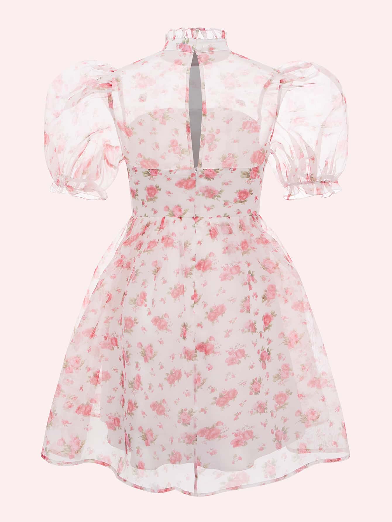 Mock Neck Floral Print Organza Dress Without Cami Top