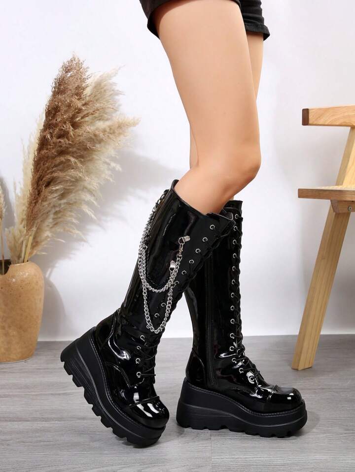 Motorcycle Lolita Black Gothic Boots Ins High Heel Thick-Soled Height-Increasing Short Boots Spring/Autumn JK Boots