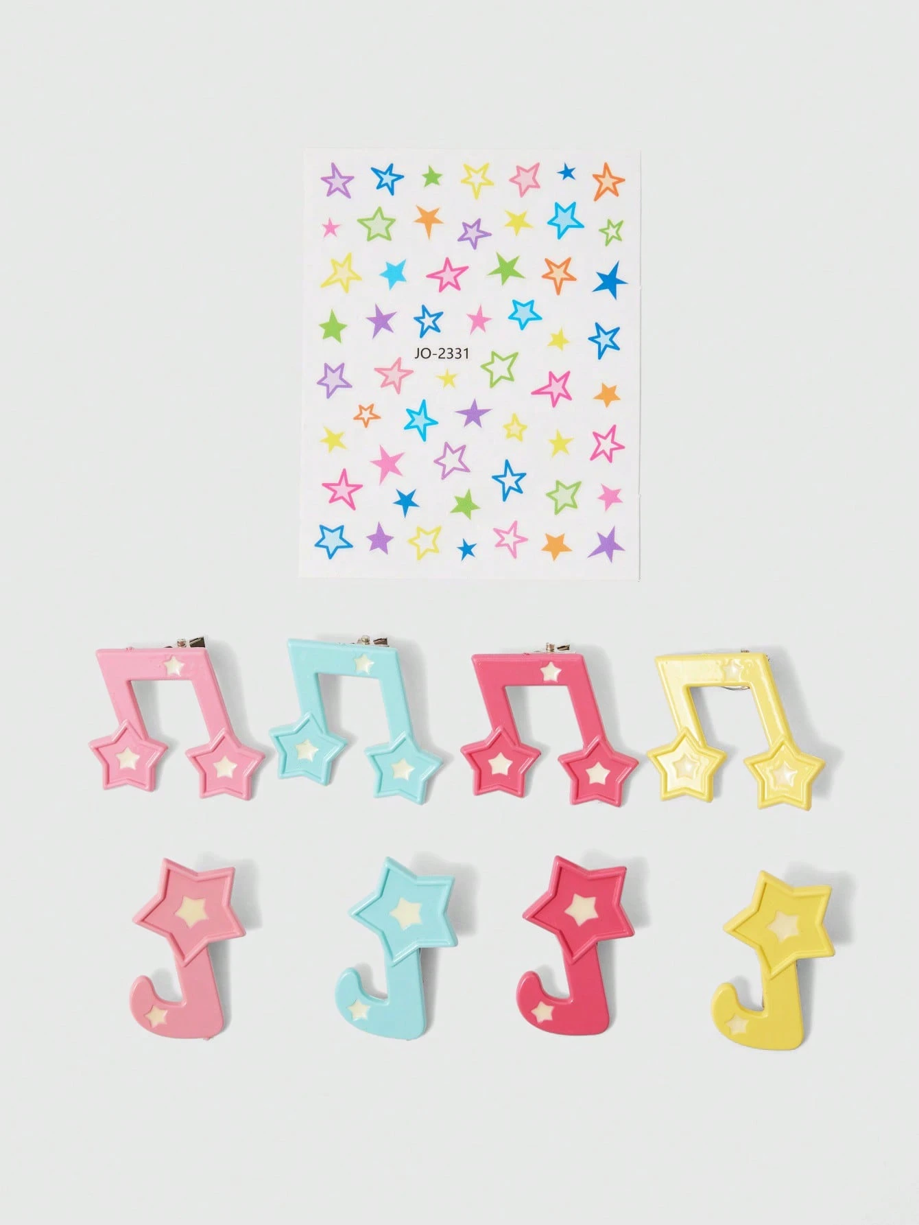 Kawaii Multi-Pack Sweet Candy Color Star Makeup Glitter Face Stickers, Lucky Music Notecharm Hair Clips, Face Stickers And Hair Accessories