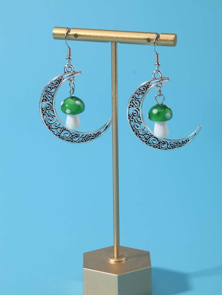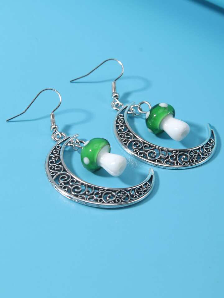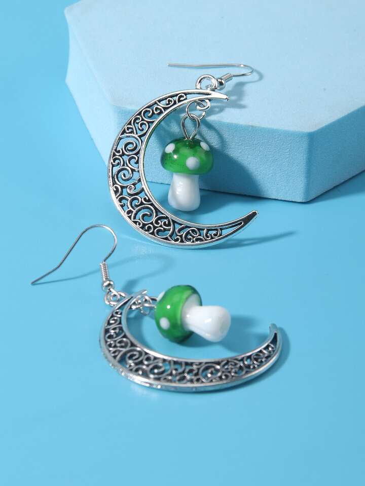 Mushroom & Moon Drop Earrings