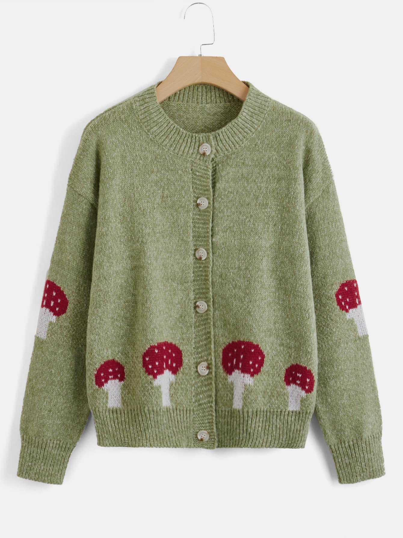 Mushroom Pattern Drop Shoulder Cardigan