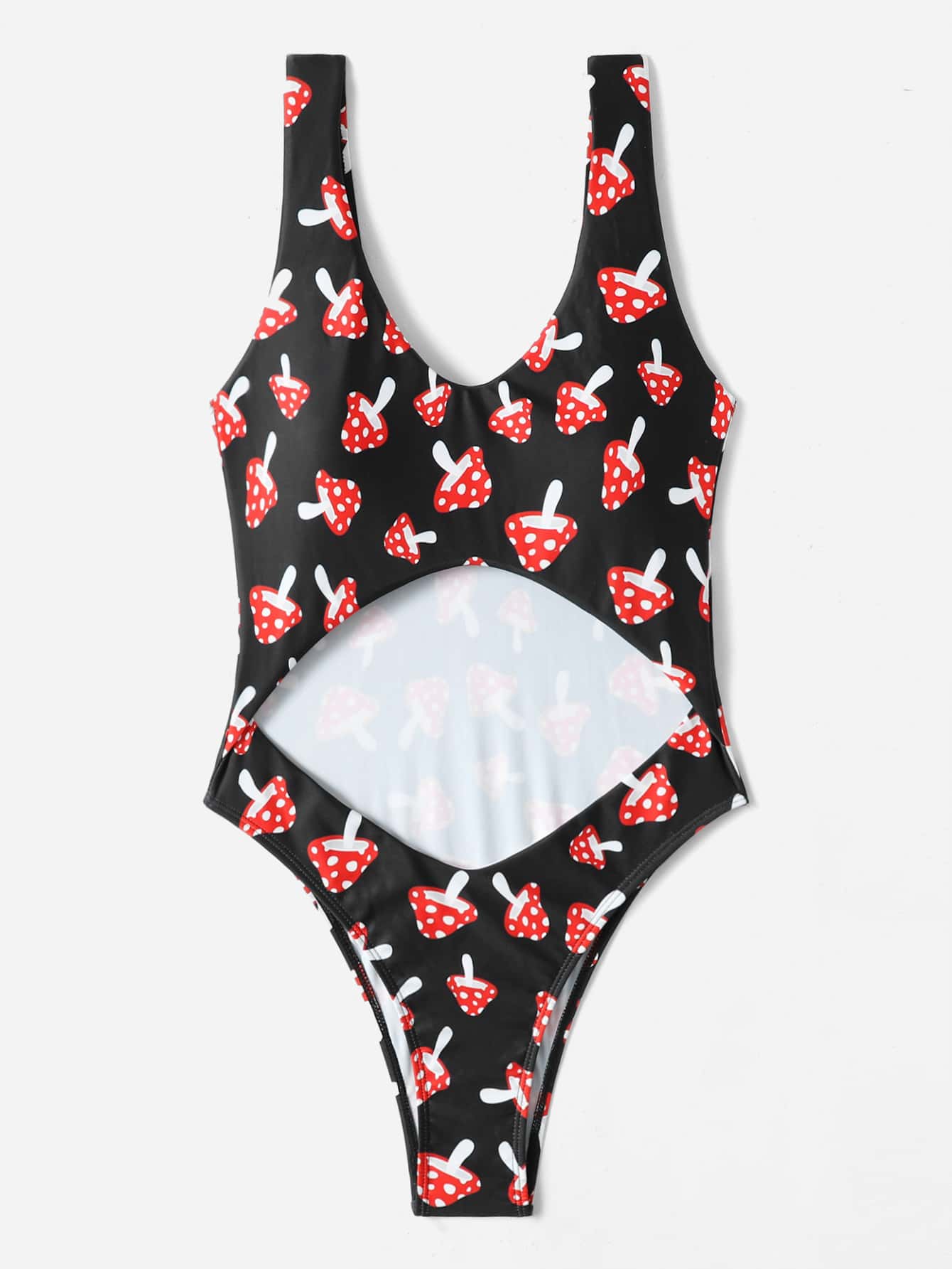 Mushroom Print Cut-out One Piece Swimsuit