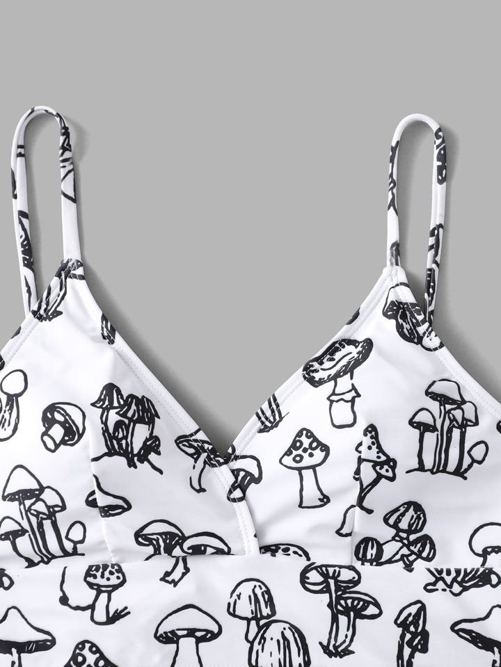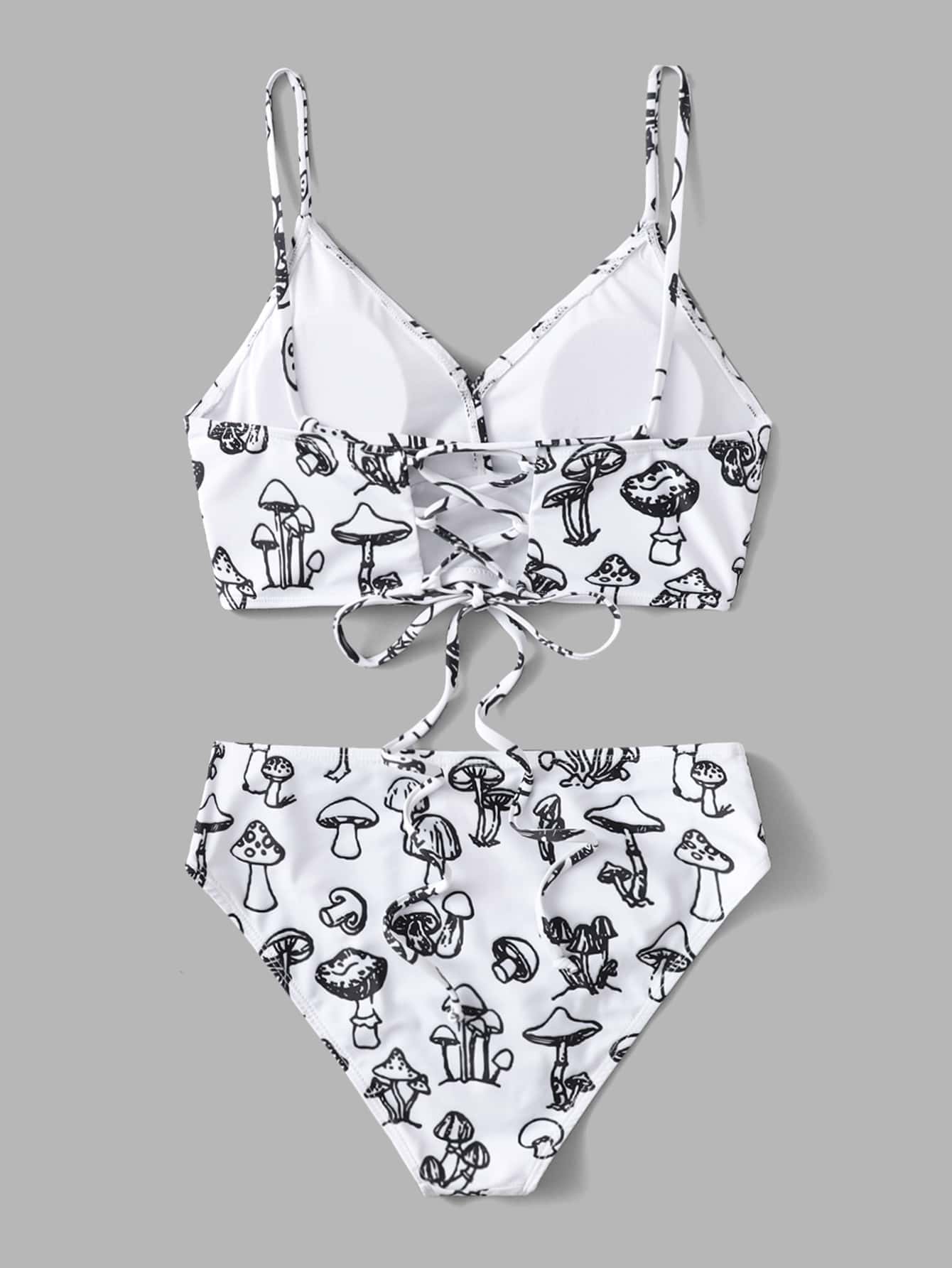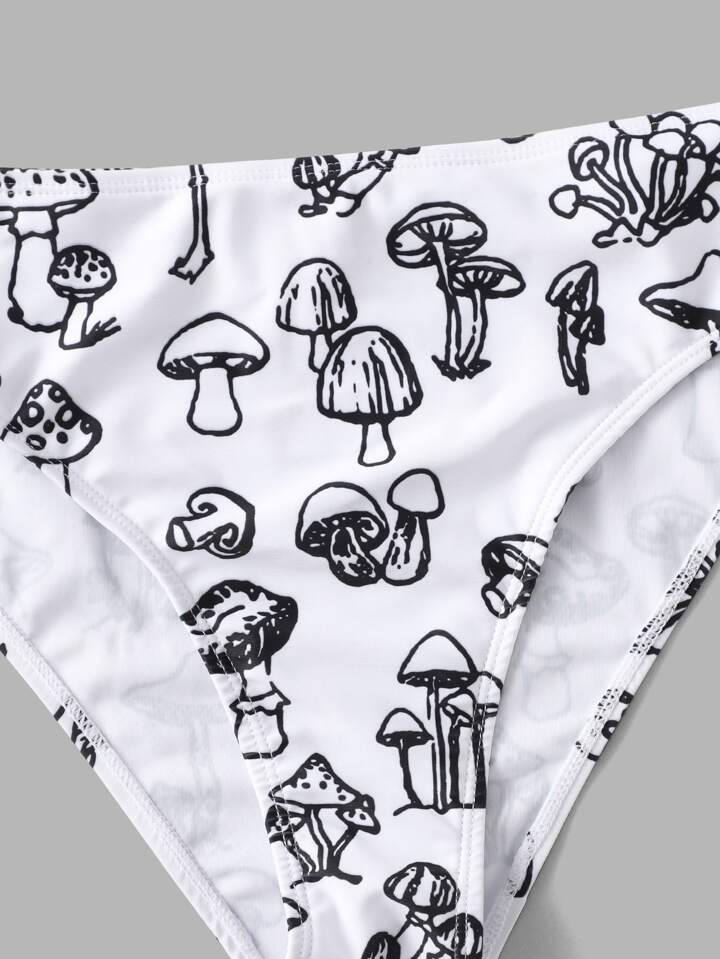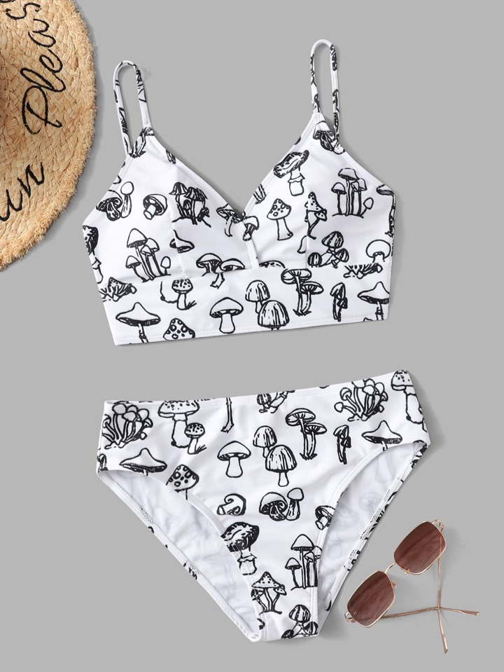 Mushroom Print High Waisted Bikini