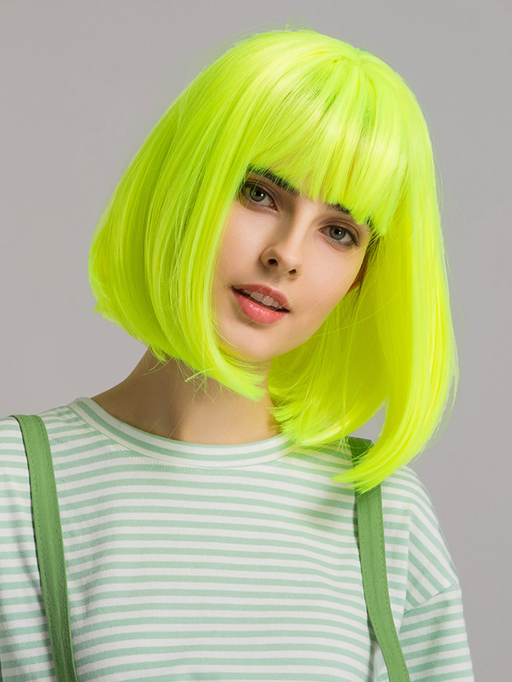 Neon Green Bob Wig With Bangs