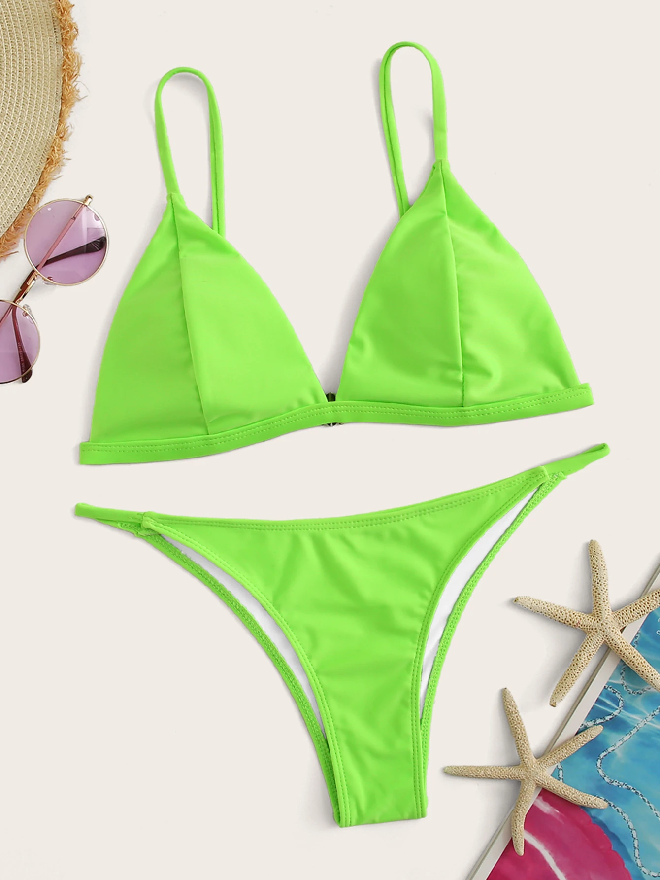 Neon Lime Triangle Top With String Bikini Set