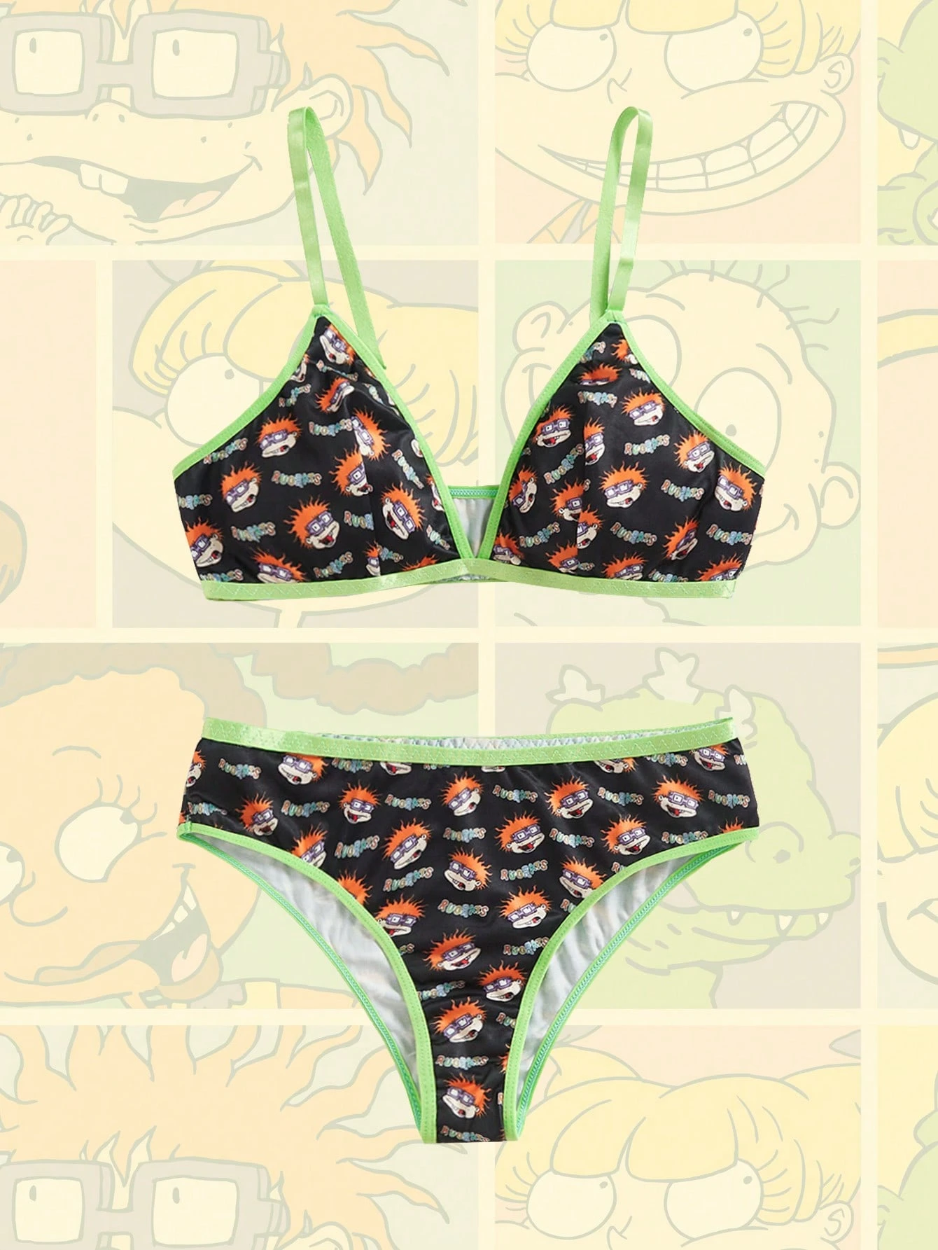 Nick 90's X ROMWE Cartoon Collaboration Triangle Cup Bra And Triangle Panty Set, Kawaii