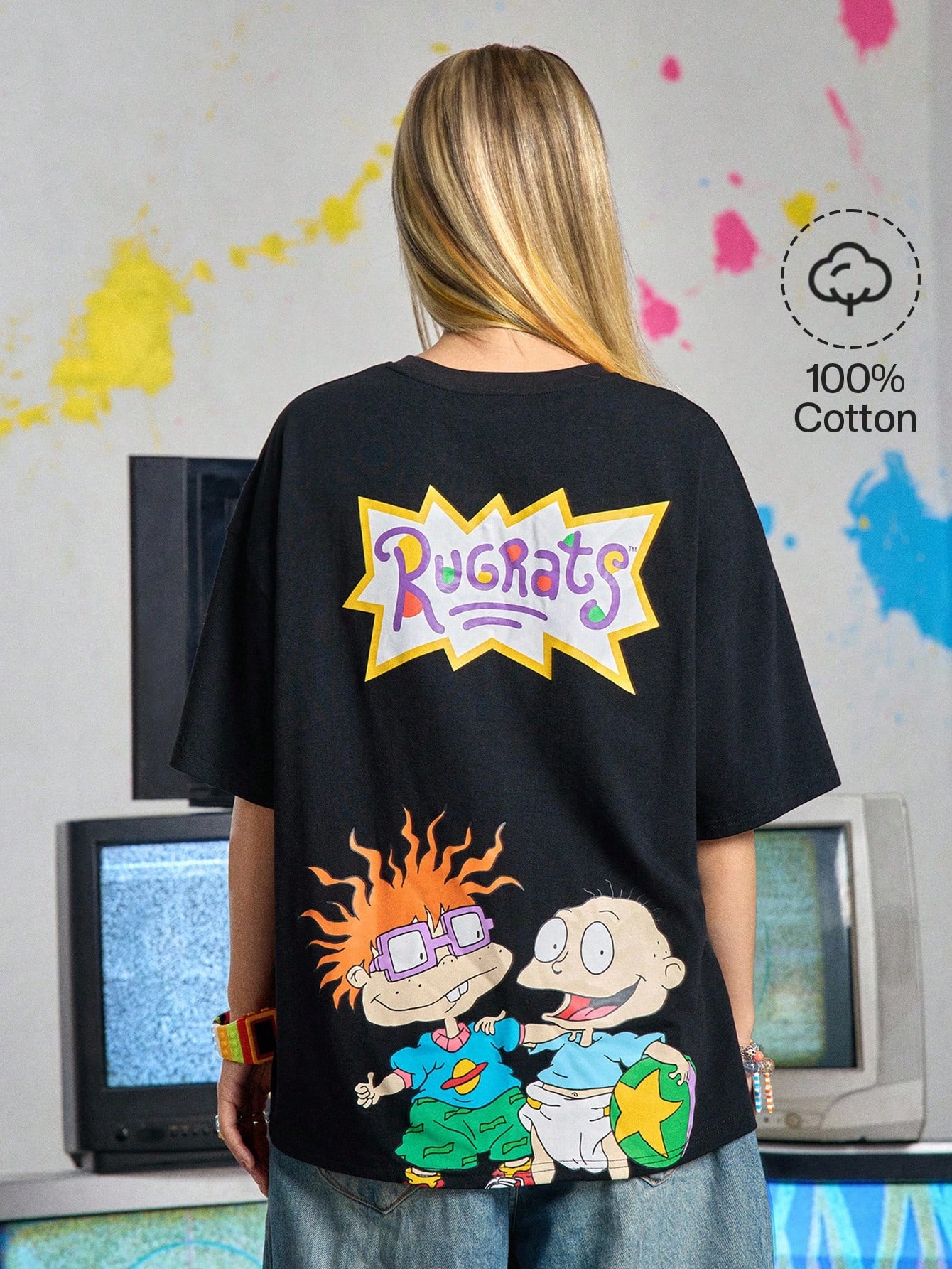 Nick 90's X ROMWE Women's Casual Creative Graphic Print Loose Batwing T-Shirt, Summer