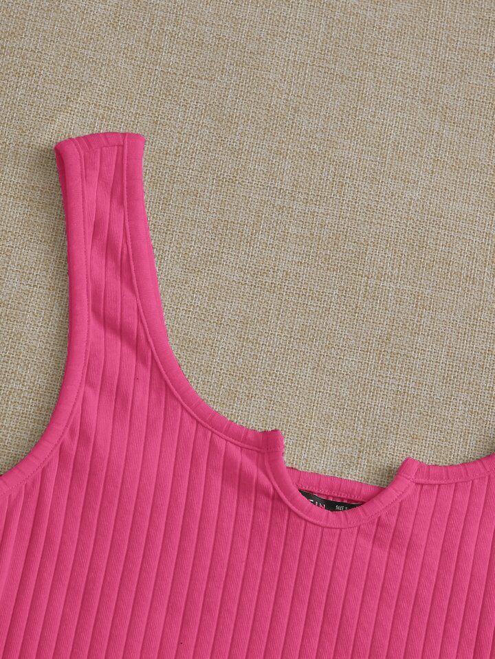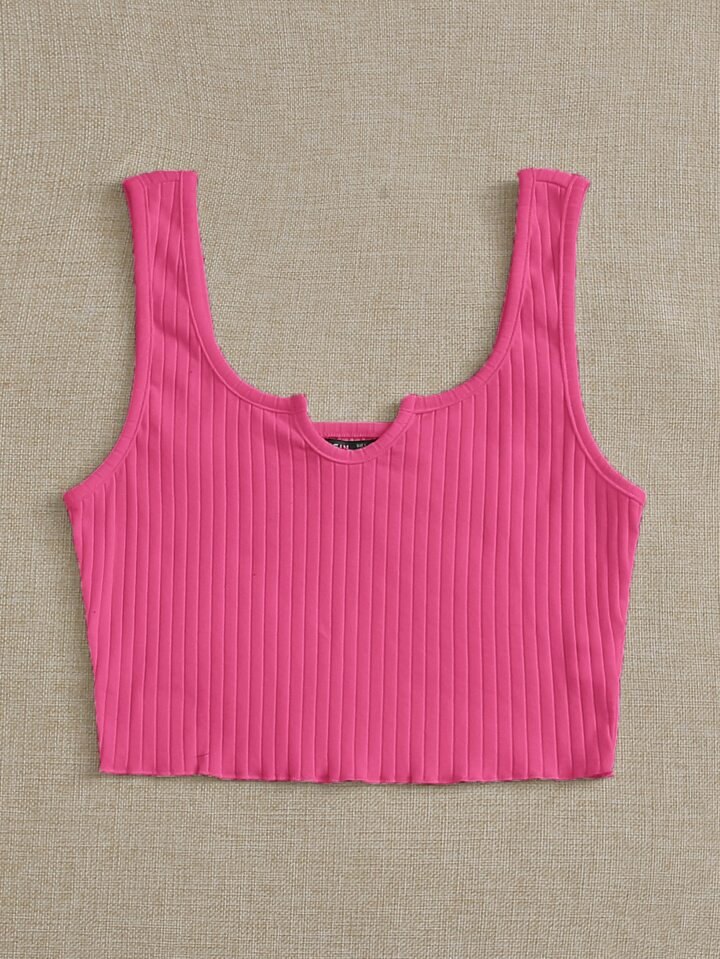 Notched Neck Rib-knit Crop Tank Top