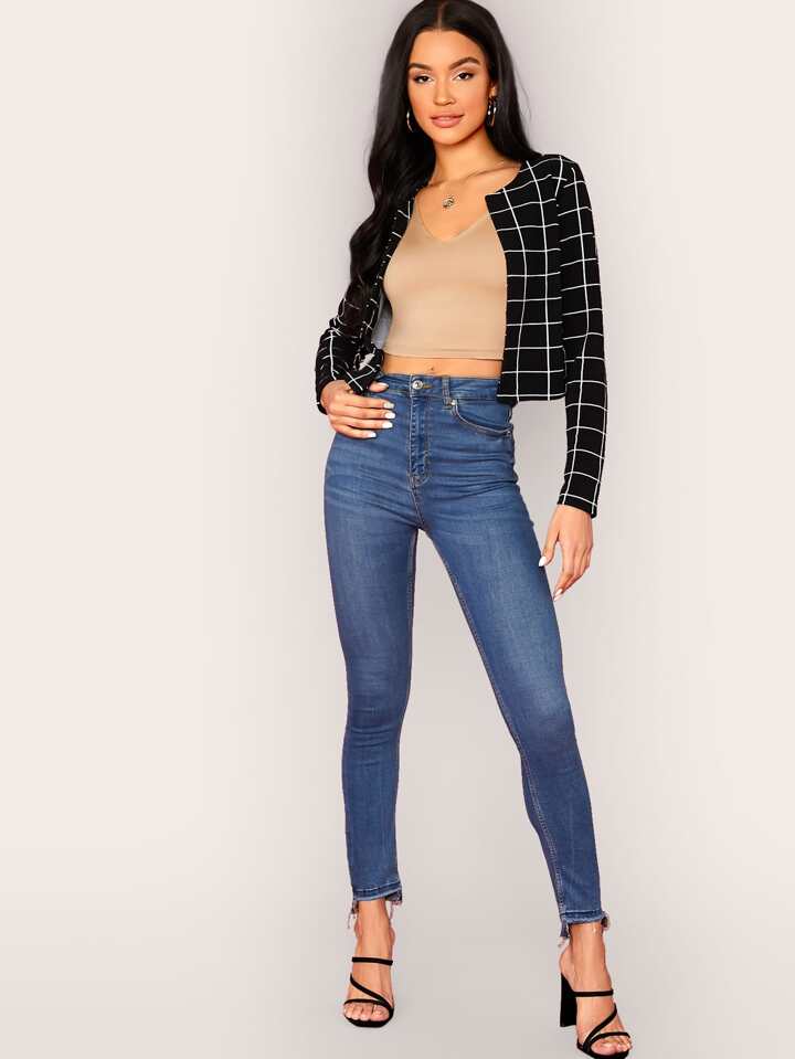 Open Front Grid Crop Blazer