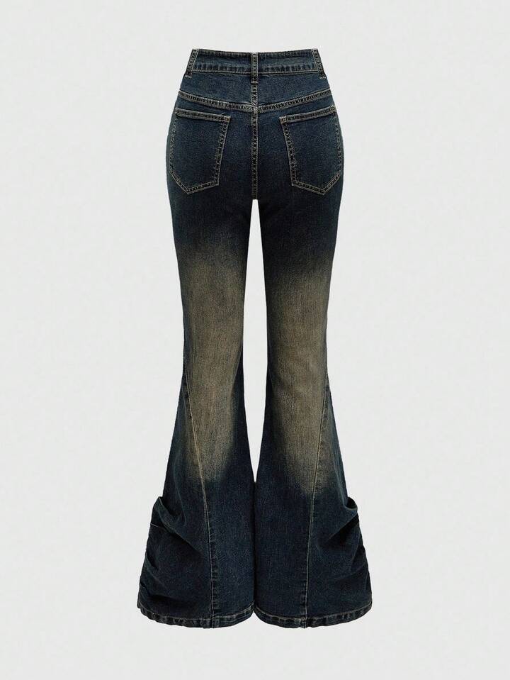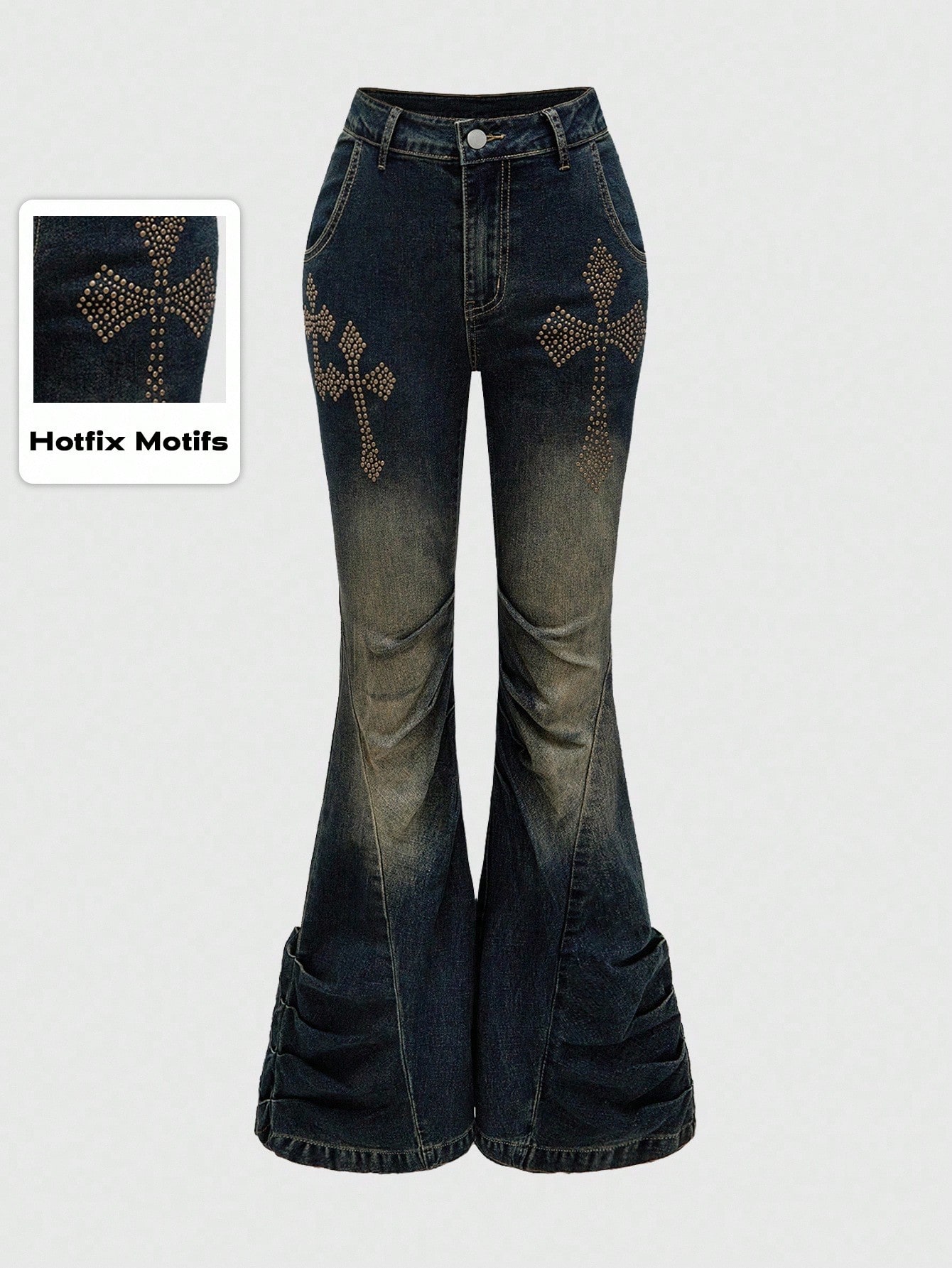 PETITE Shibuya Gyaru Subculture Y2K Retro Cross Metal Stud Skinny Distressed Flare Jeans For Women