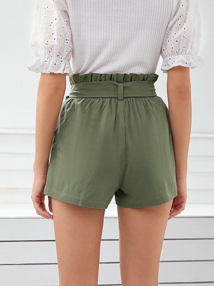 Paperbag Waist Slant Pocket Belted Shorts Summer Green Casual