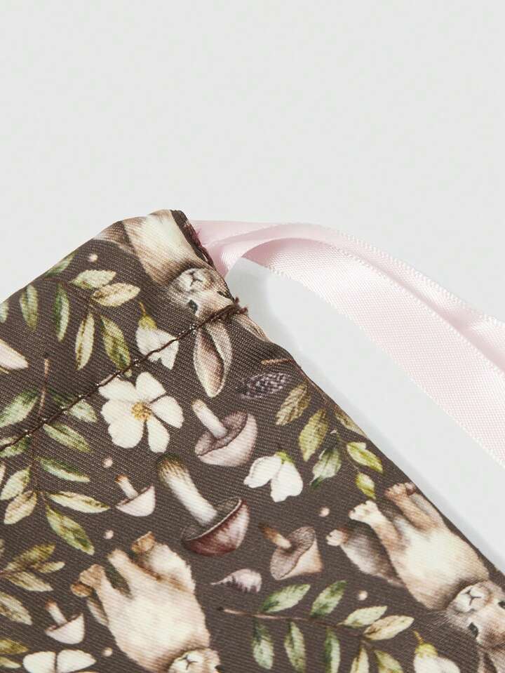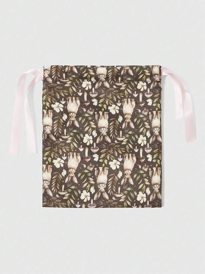 Pati Paints Fairycore Drawstring Storage Bag With Cartoon Rabbit Print, Portable Makeup Pouch