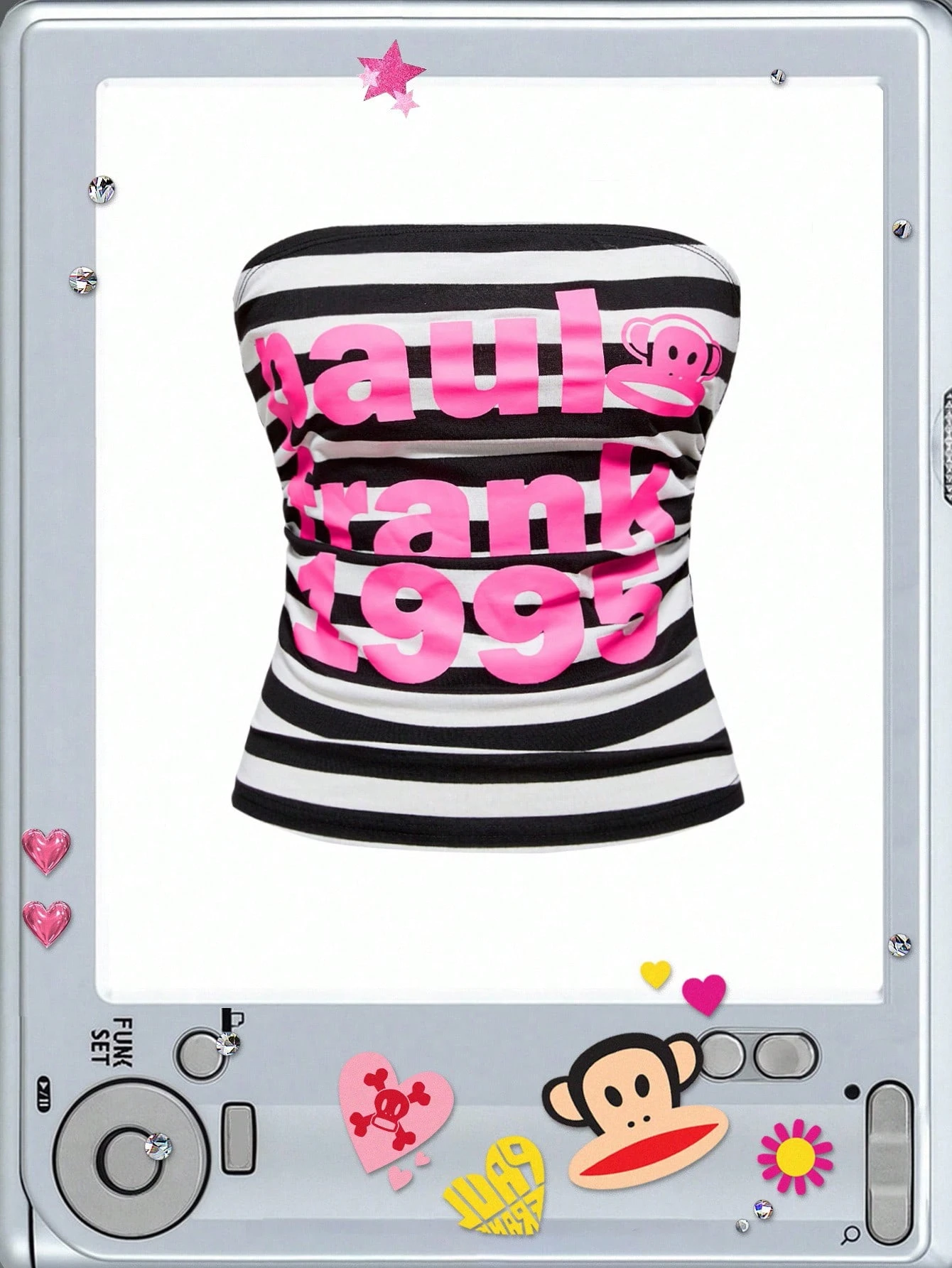 Paul Frank X ROMWE Women Kpop Striped Letter Graphic Vintage Y2K Tube Top