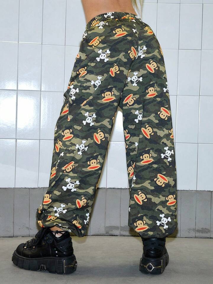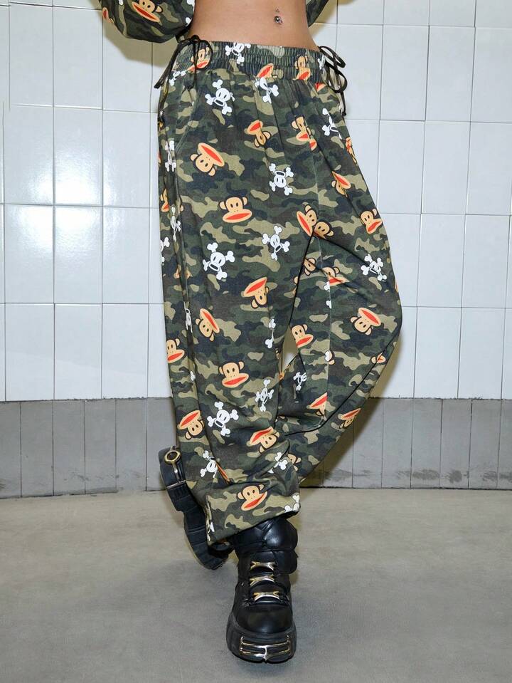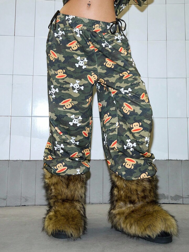 Paul Frank X ROMWE Y2K Kpop Subculture Baddie Street All-Over Print Loose Camo Sweatpants