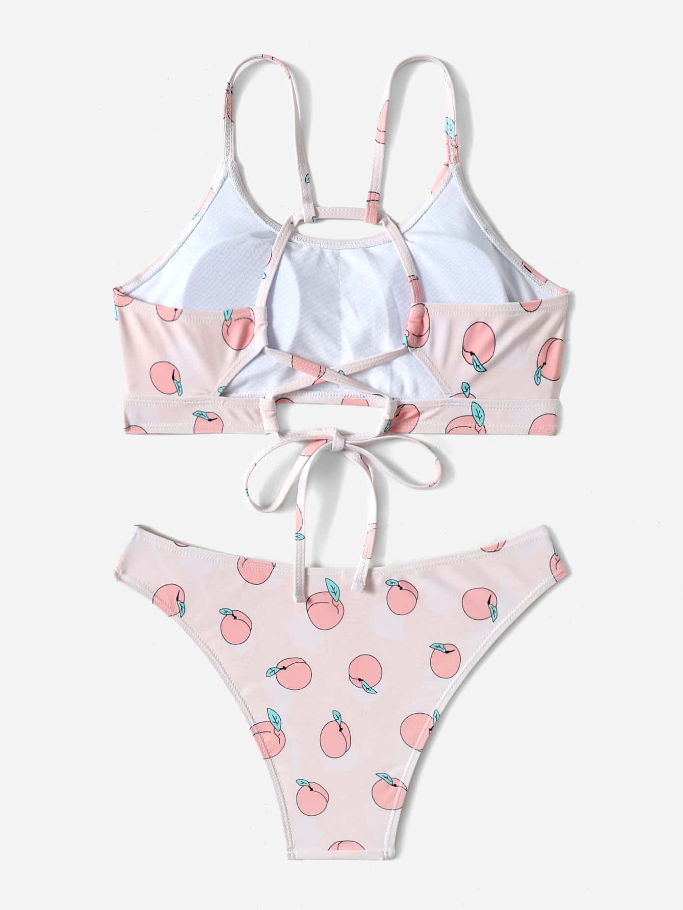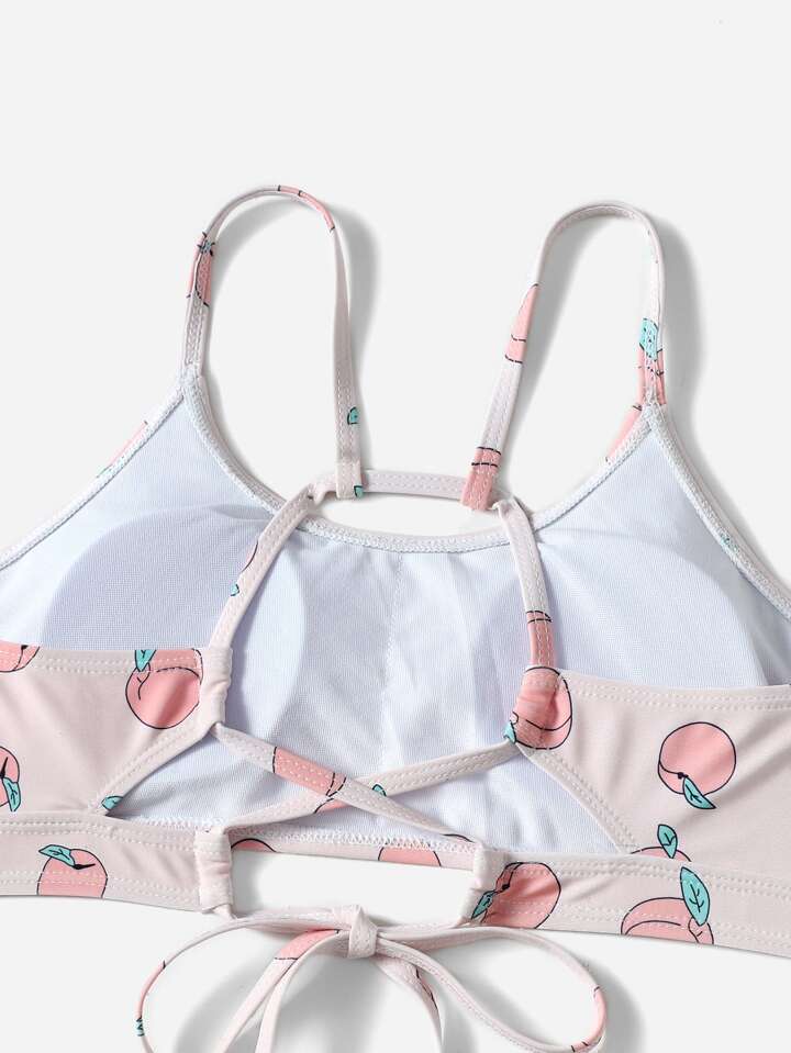 Peach Print Lace Up Bikini