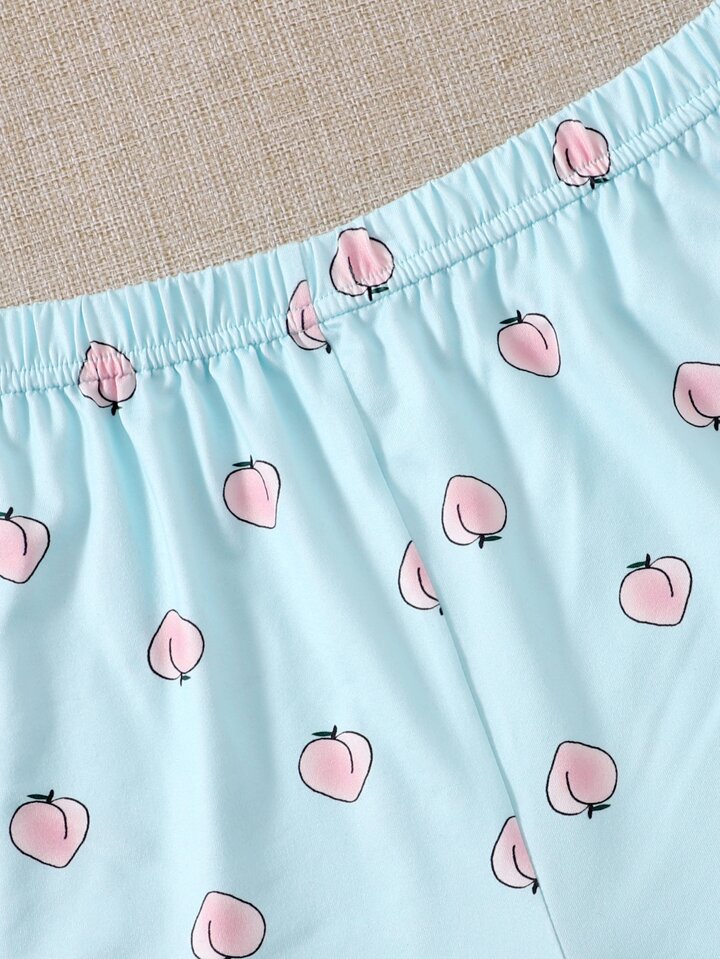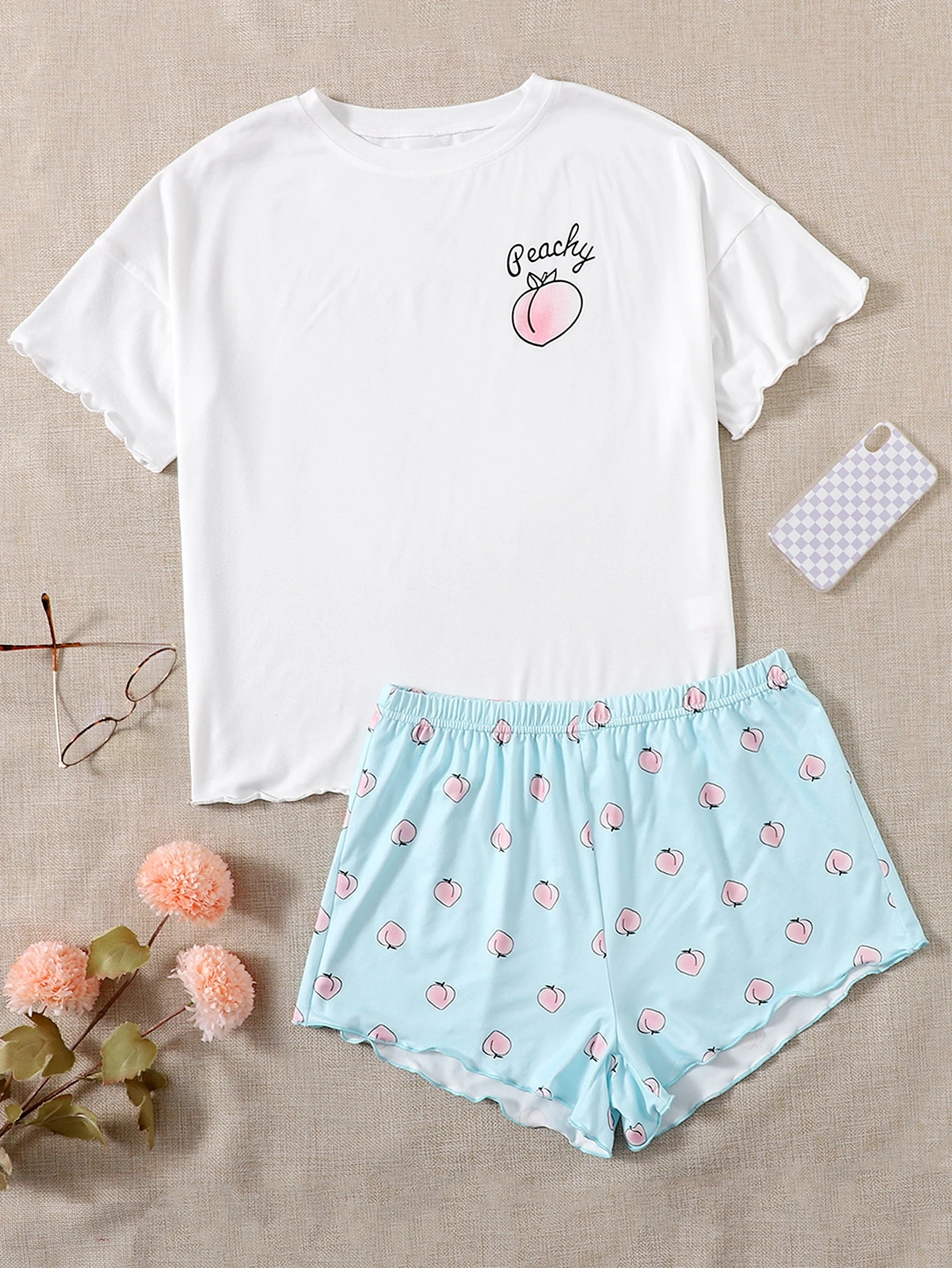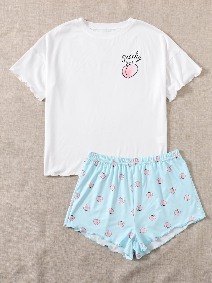Peach Print Lettuce Trim Pajama Set