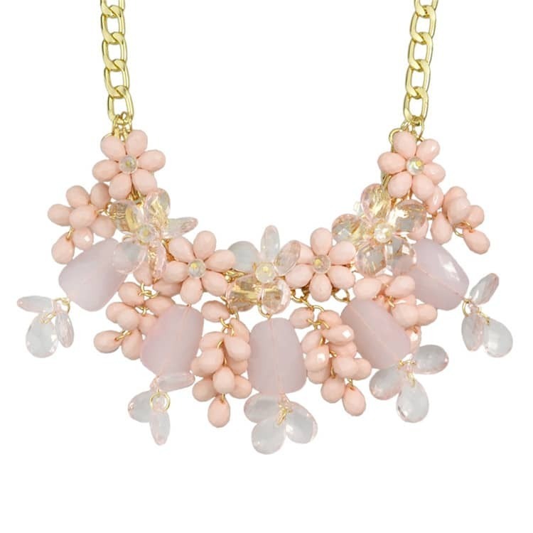 Pink Beautiful Resin Chunky Statement Flower Necklace