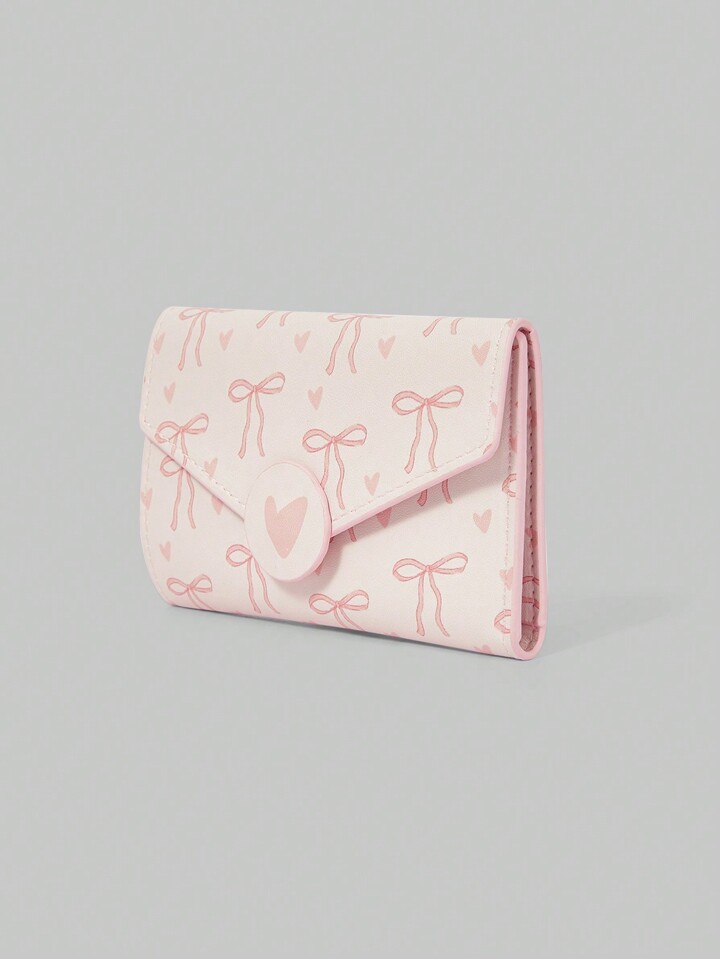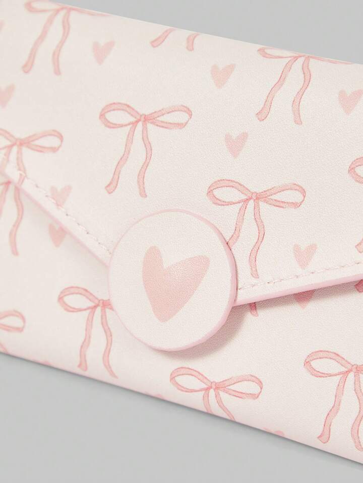 Pink Portable Fashion Bow Print Cute Card Holder Wallet
