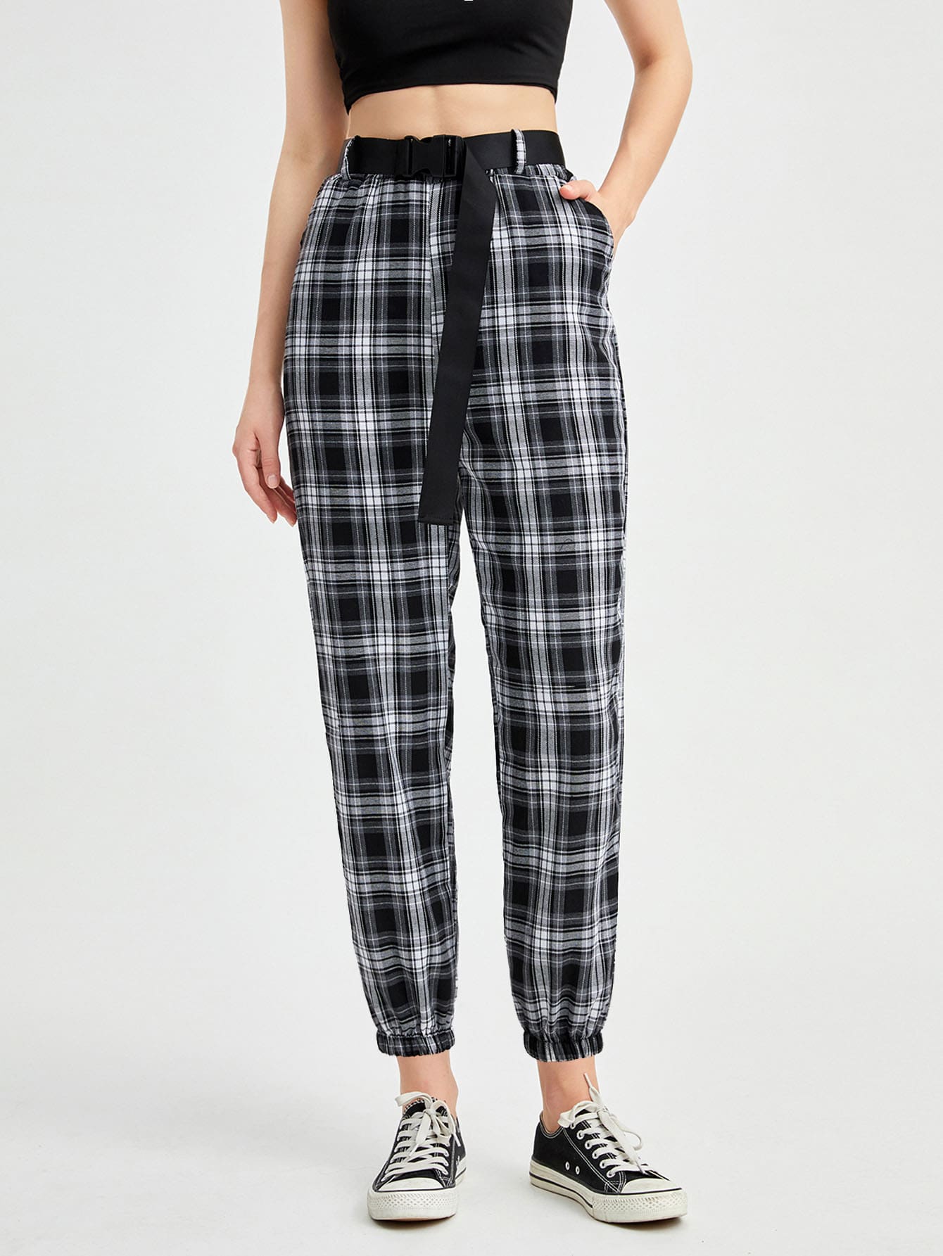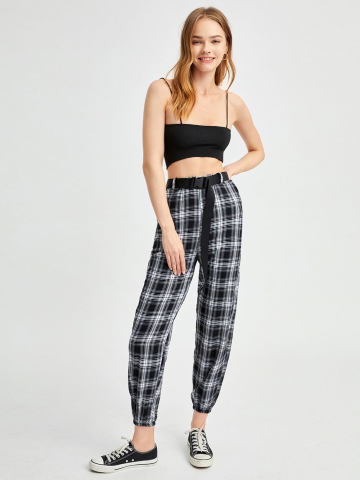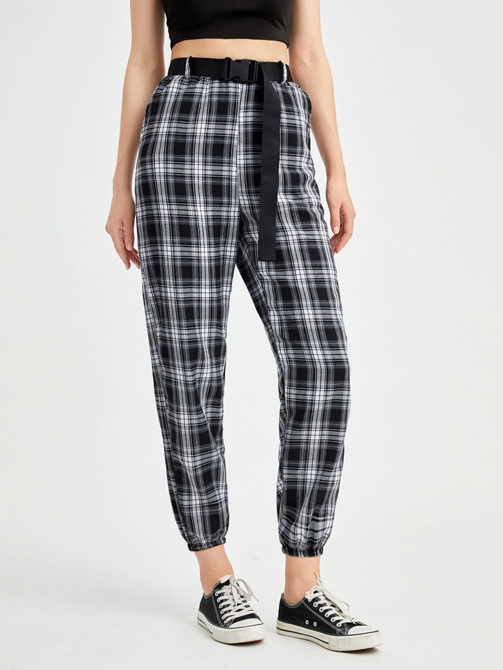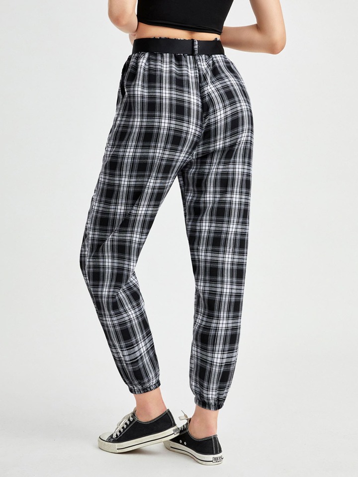 Plaid Belted Joggers