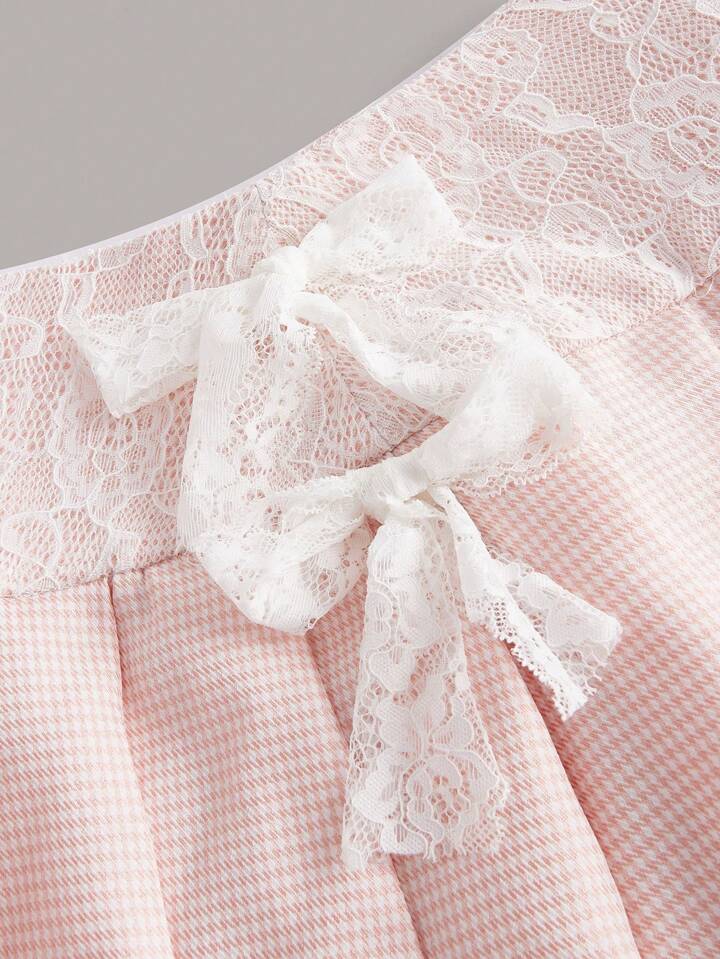 Plaid Contrast Lace Pleated Skirt
