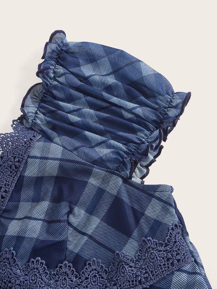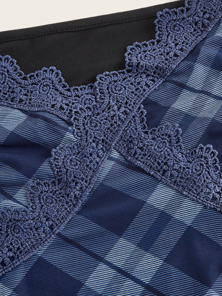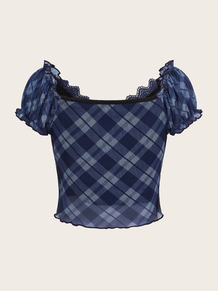 Plaid Print Lace Trim Tee