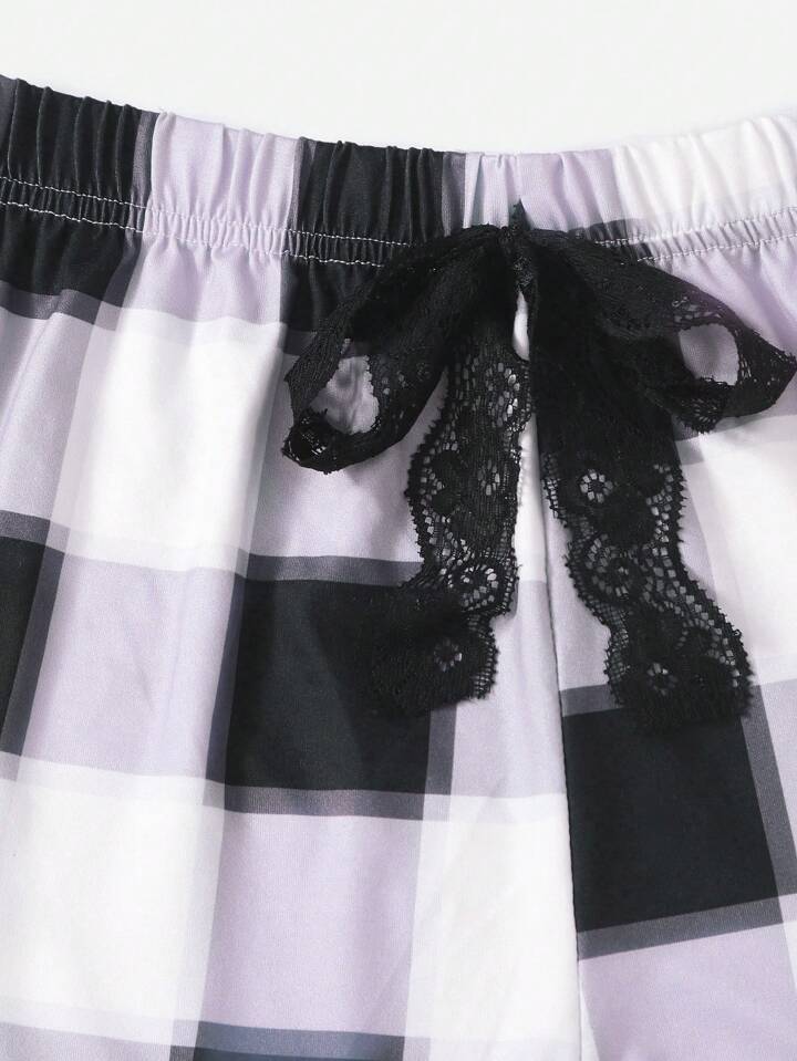 Plaid Print Tie Front PJ Set / Pajama Set