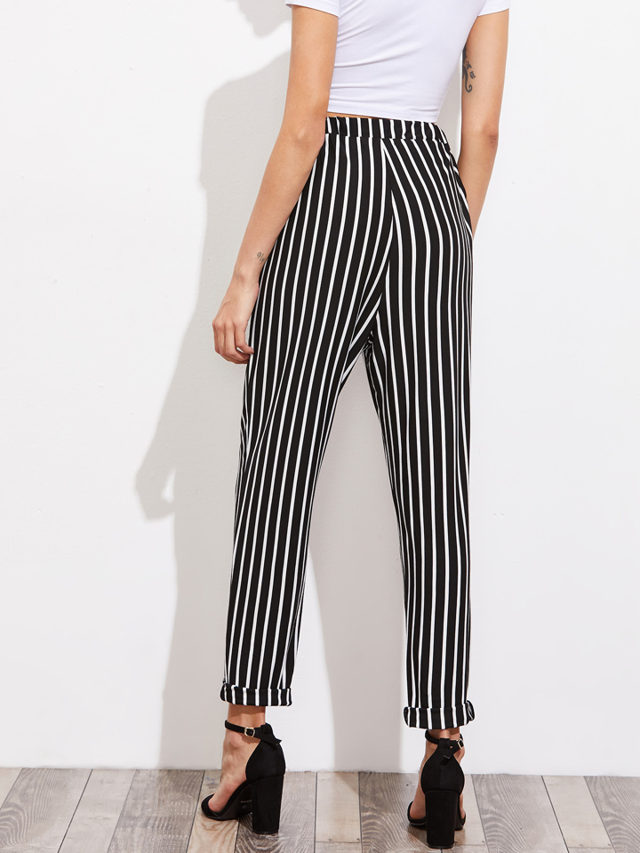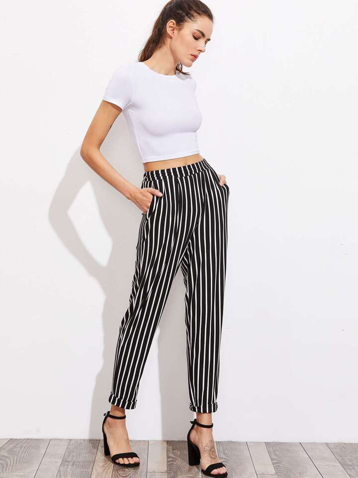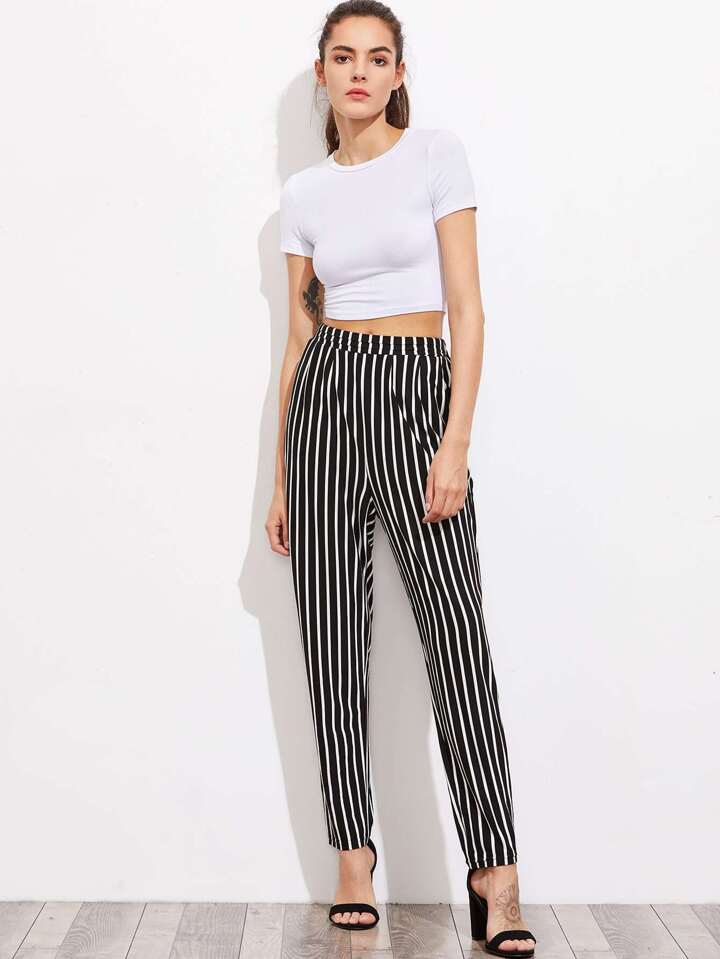 Pleated Waistband Pinstripe Peg Pants With Hidden Pocket