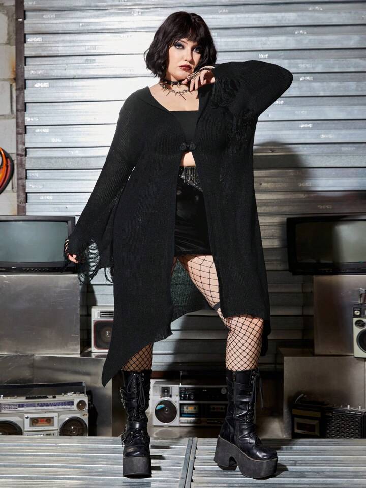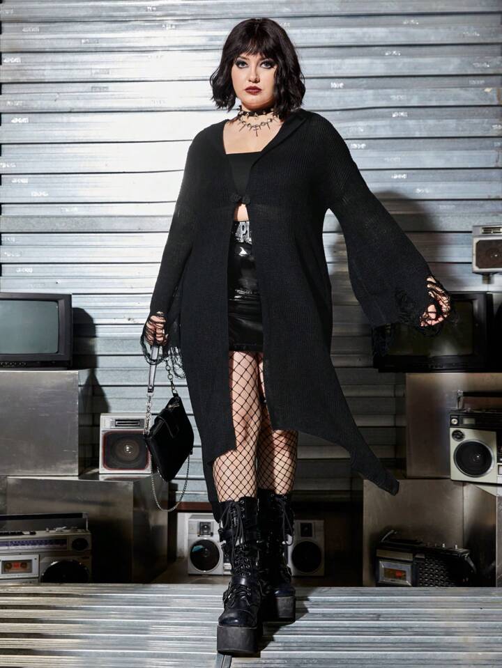 Plus 1pc Lace Trim Flounce Sleeve Cardigan