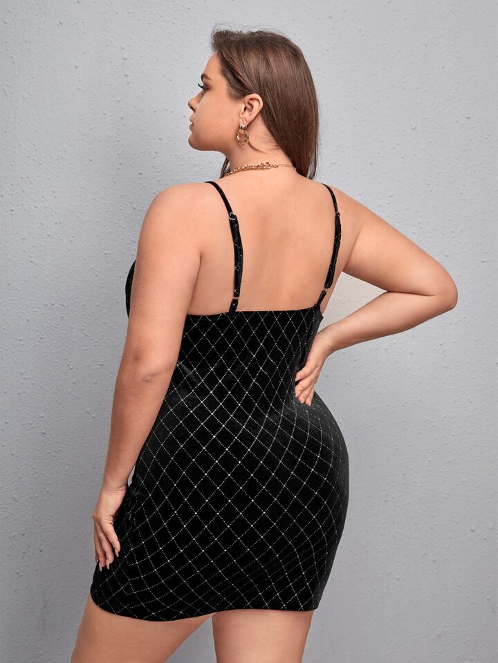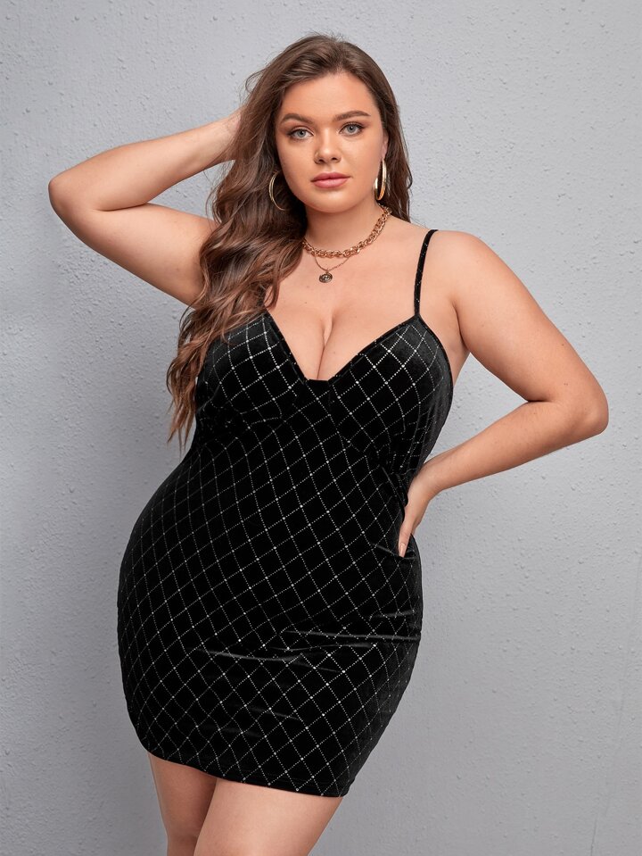 Plus Argyle Pattern Bustier Sequin Bodycon Dress