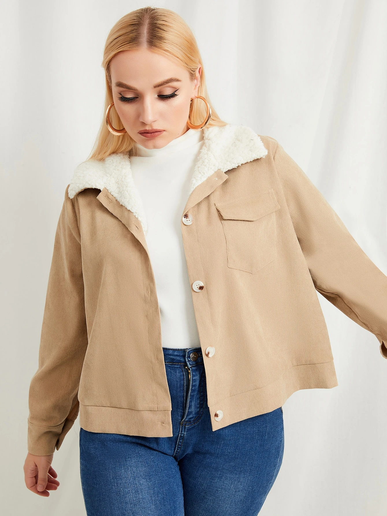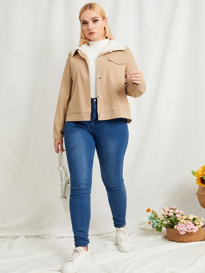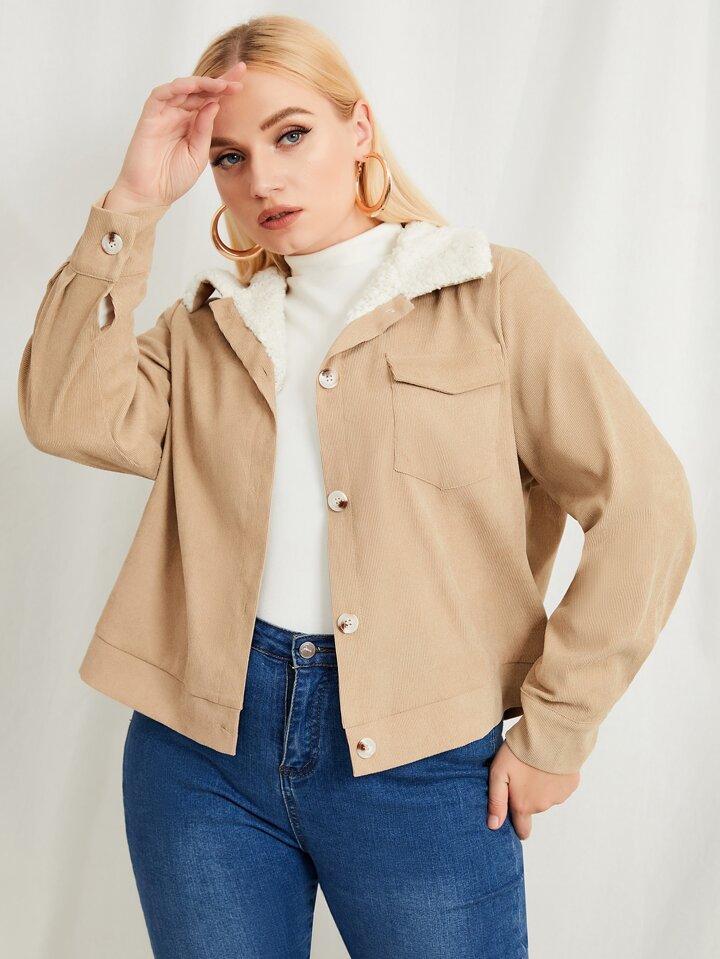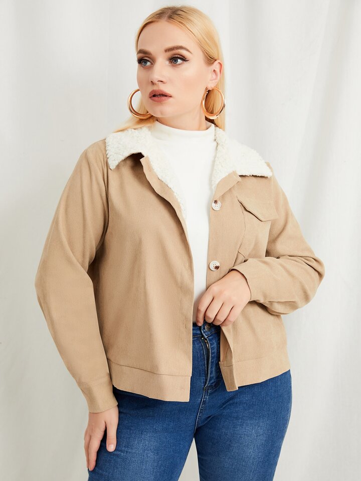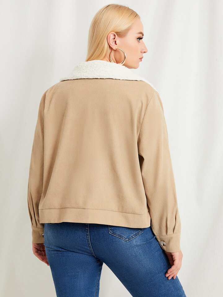 Plus Borg Collar Teddy Lined Corduroy Jacket