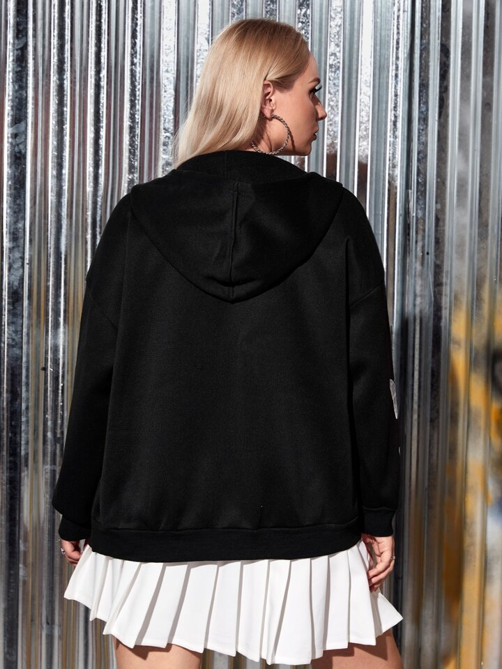 Plus Butterfly Rhinestone Zip Up Drop Shoulder Hoodie