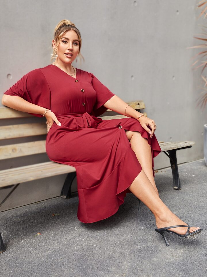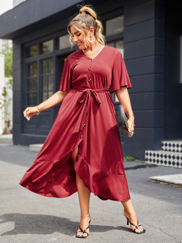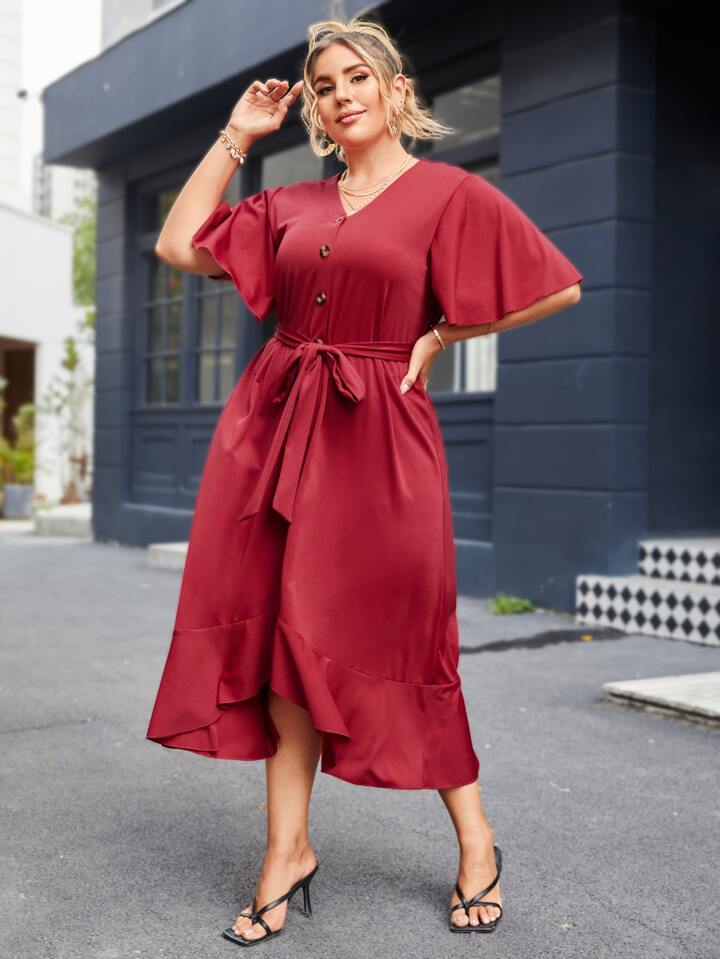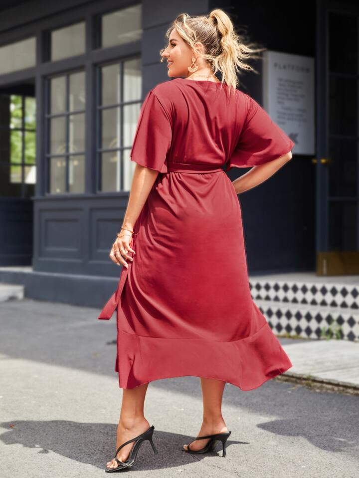 Plus Butterfly Sleeve Self Tie Dress