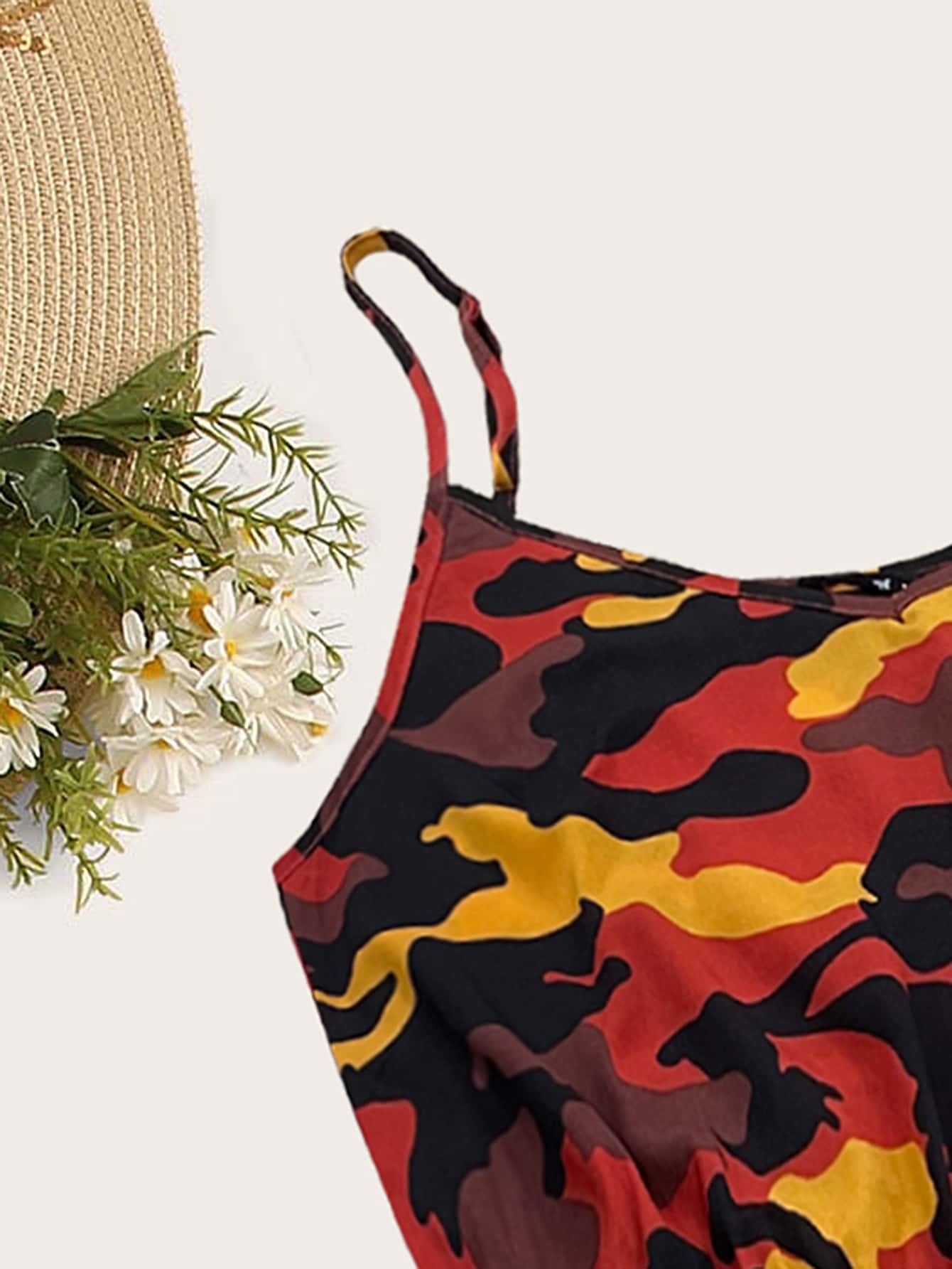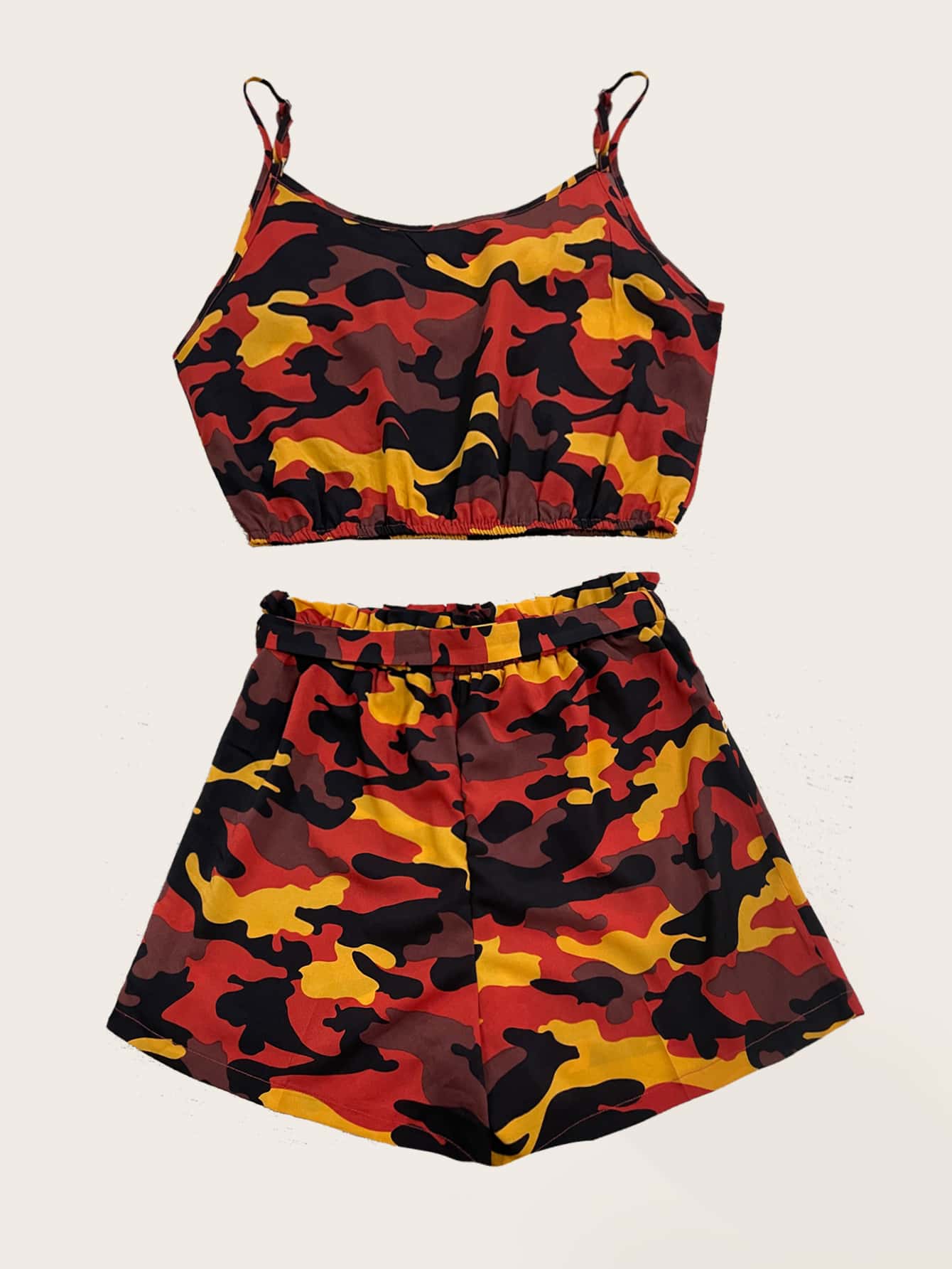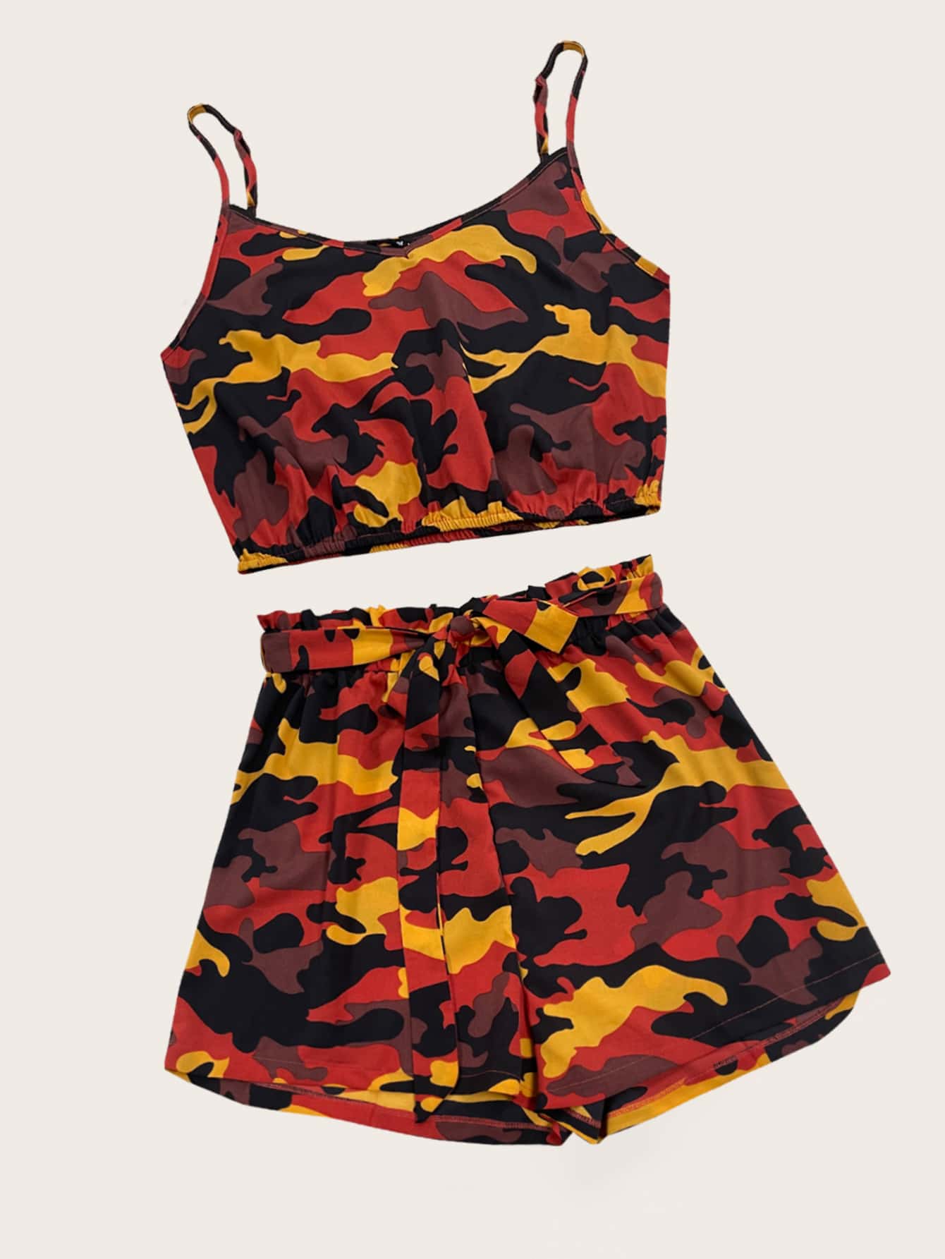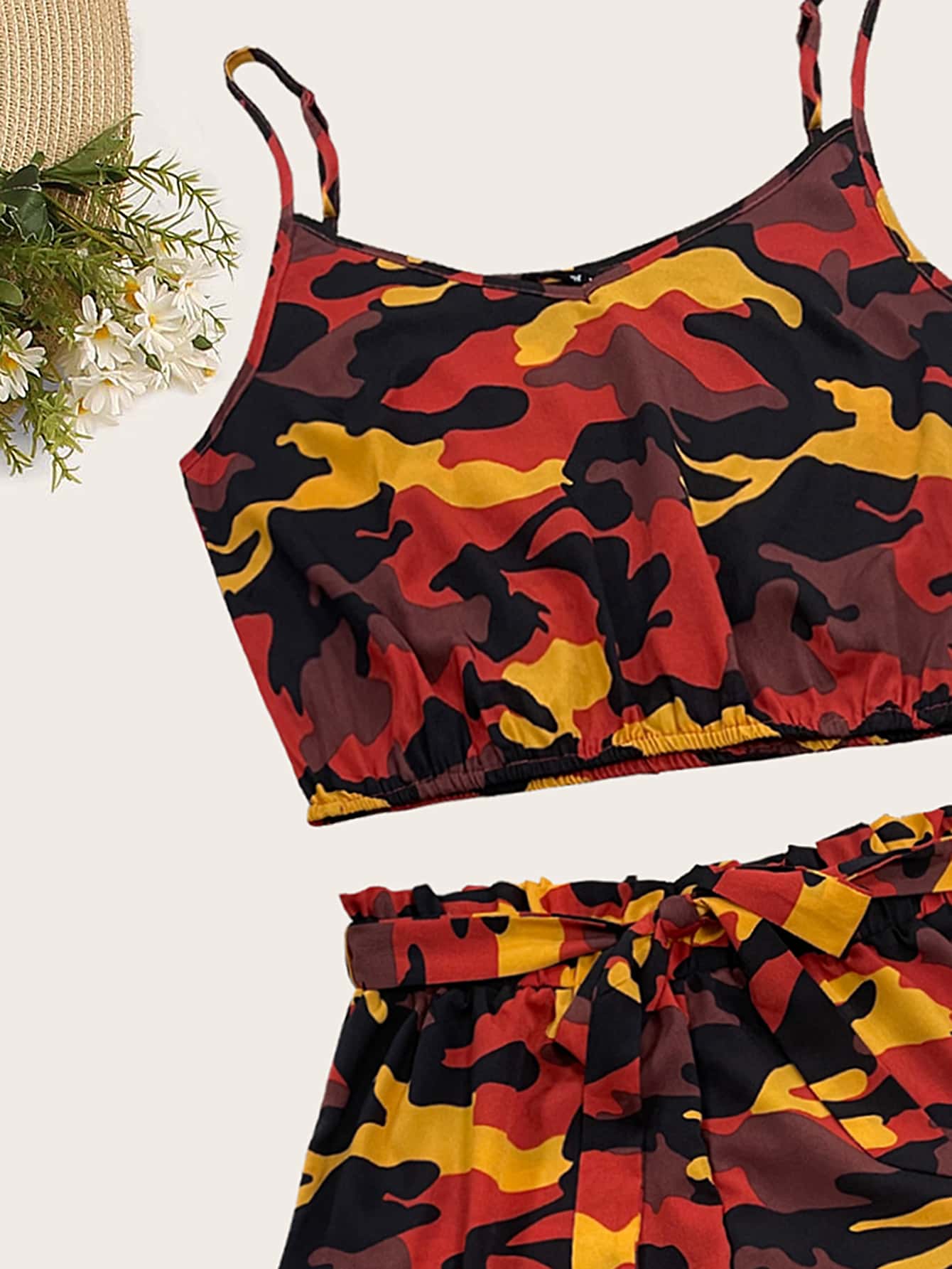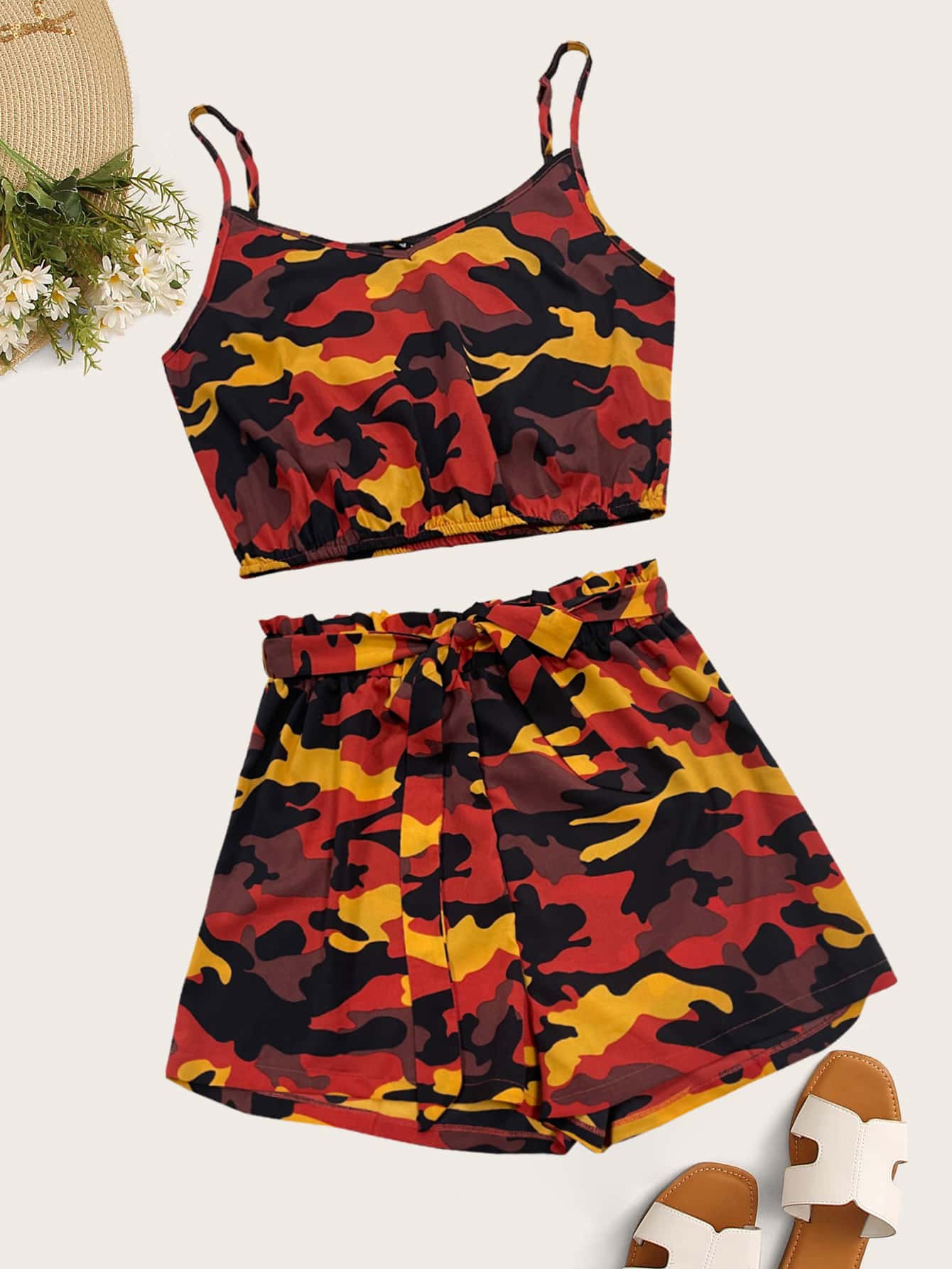 Plus Camo Cami Top With Belted Paper Bag Shorts