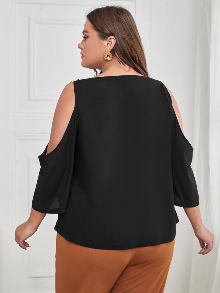 Plus Chain Linked Draped Front Cold Shoulder Blouse