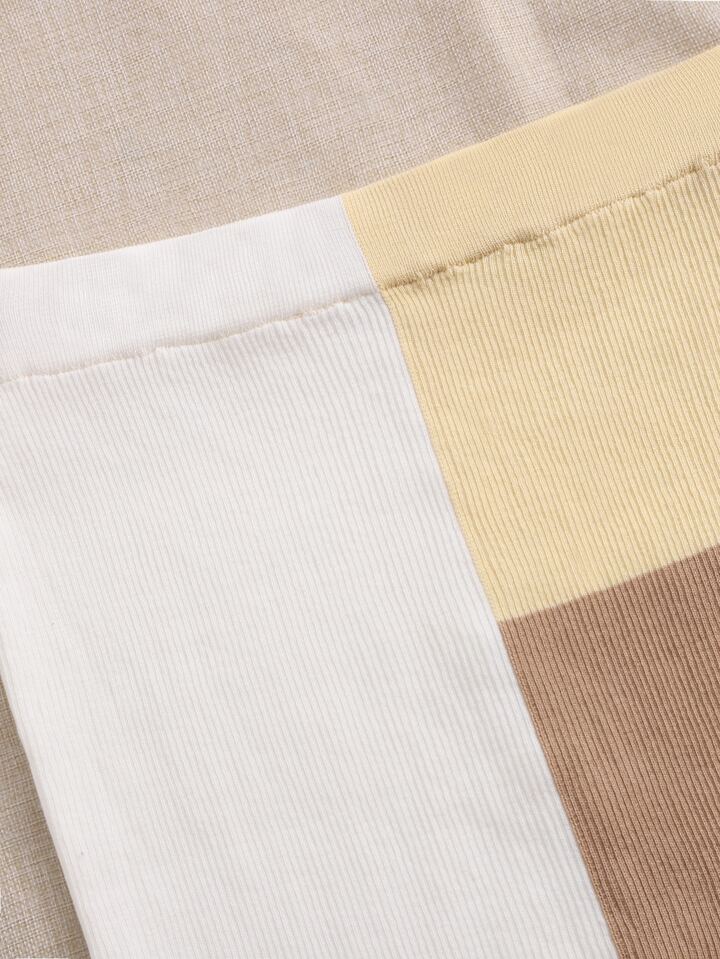 Plus Color Block Seam Front Knit Skirt